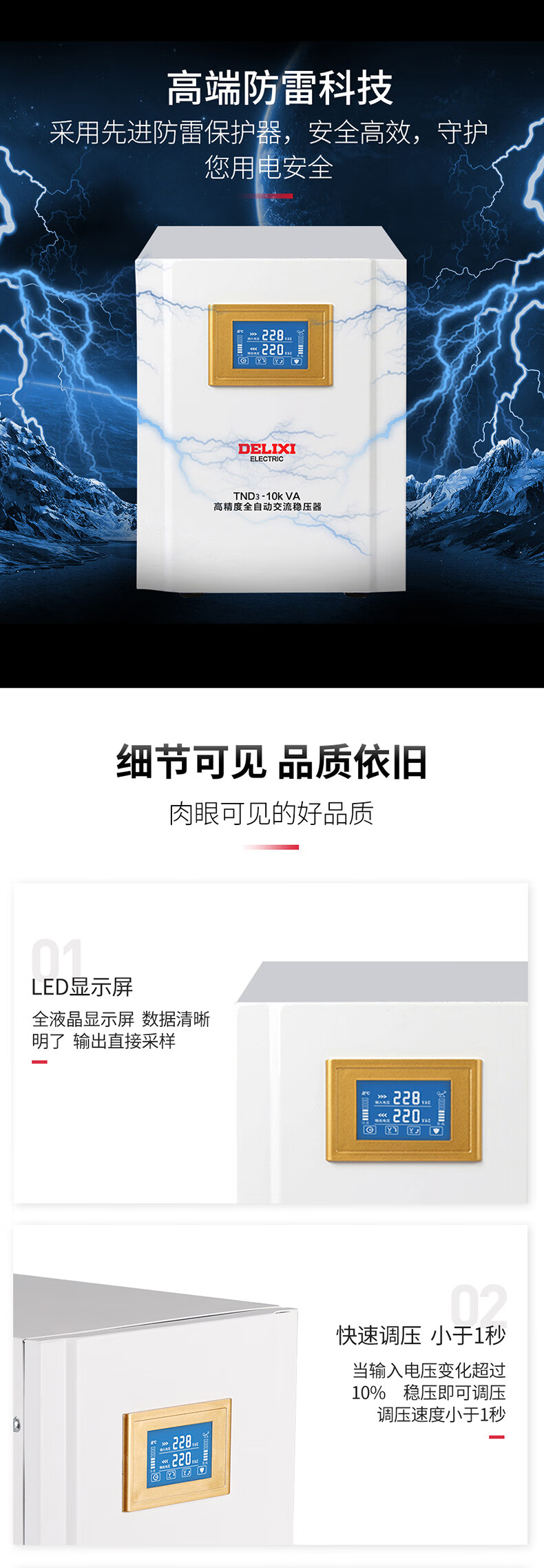 Delixi Electric Lightning Protection Voltage Regulator Household 220V Air Conditioner TV Computer Refrigerator AC Power Supply 5KW TND3
