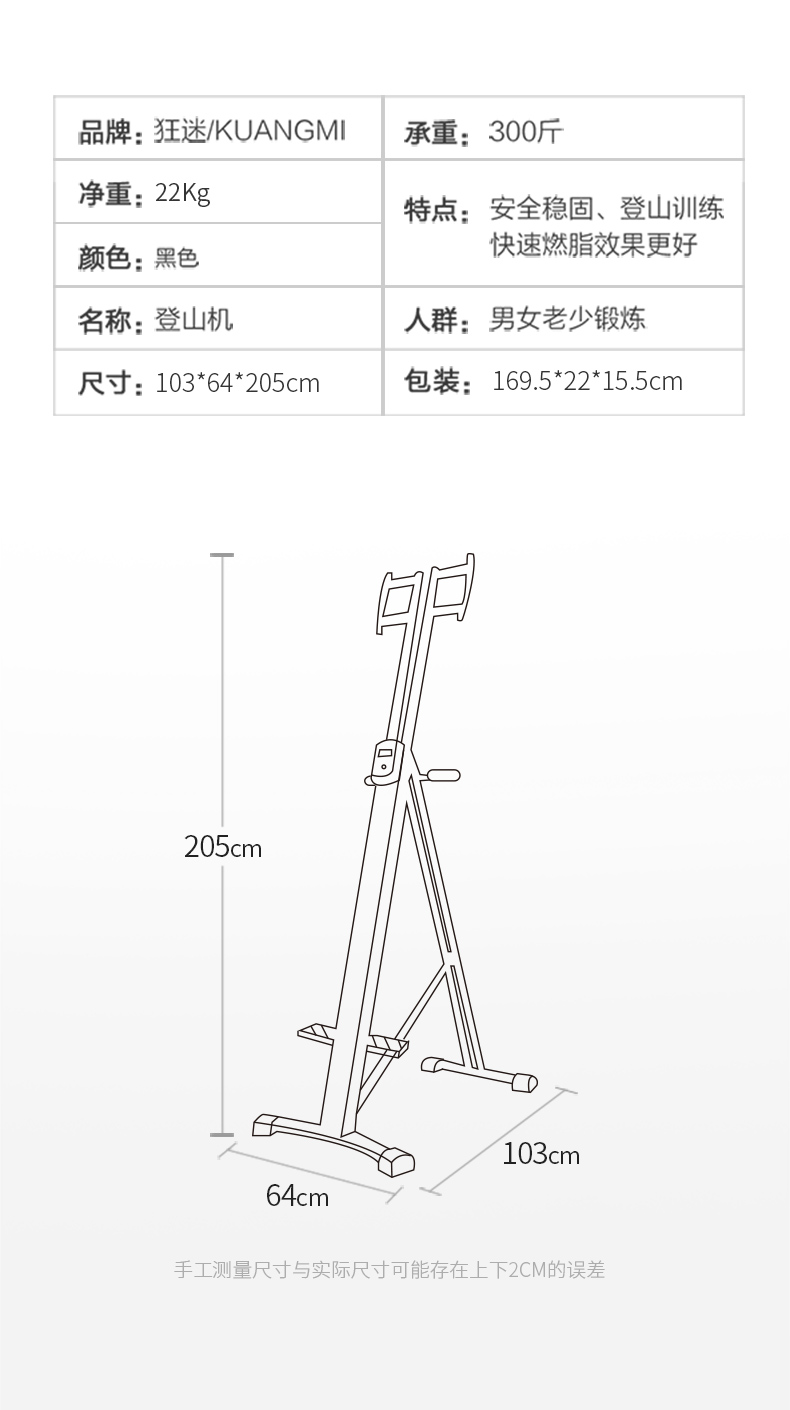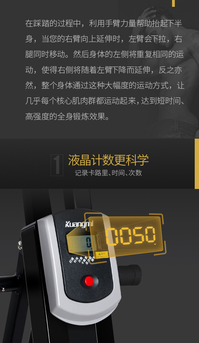 Kuangmi (kuangmi) climbing machine, climbing machine, silent weight loss, core strength training, fitness equipment, black