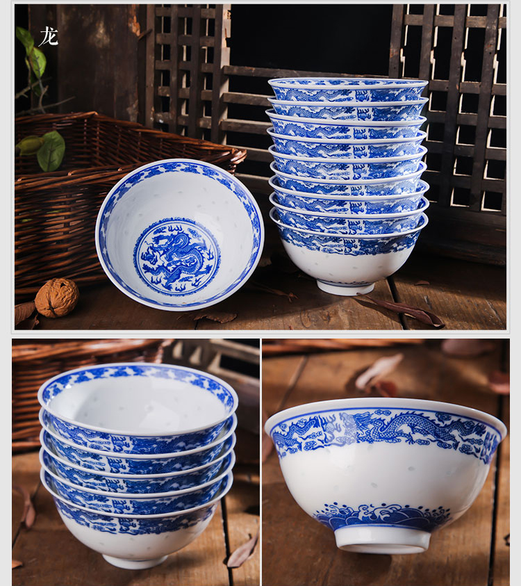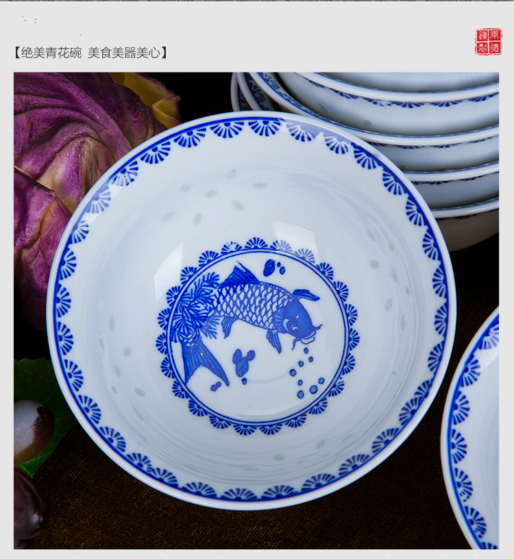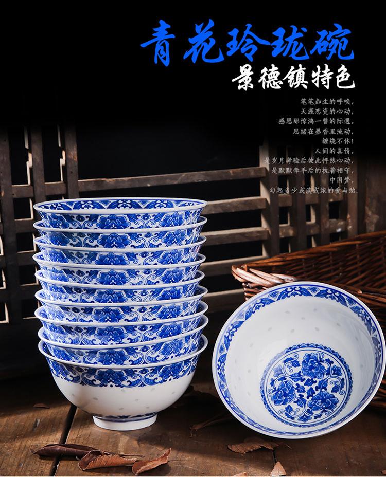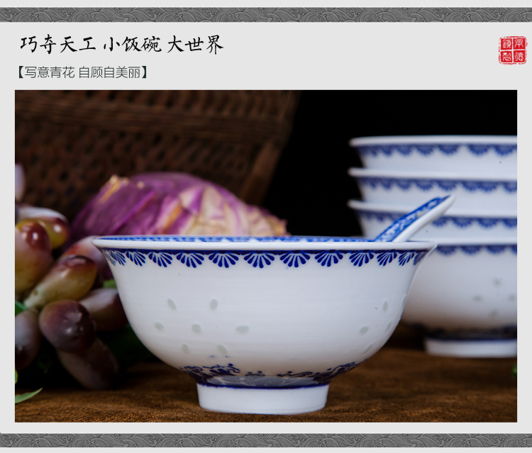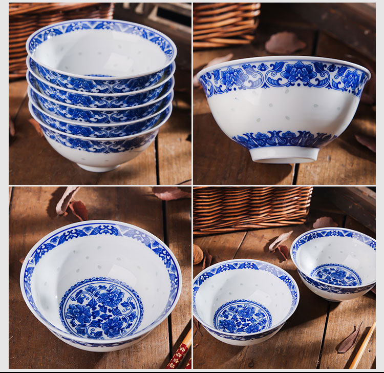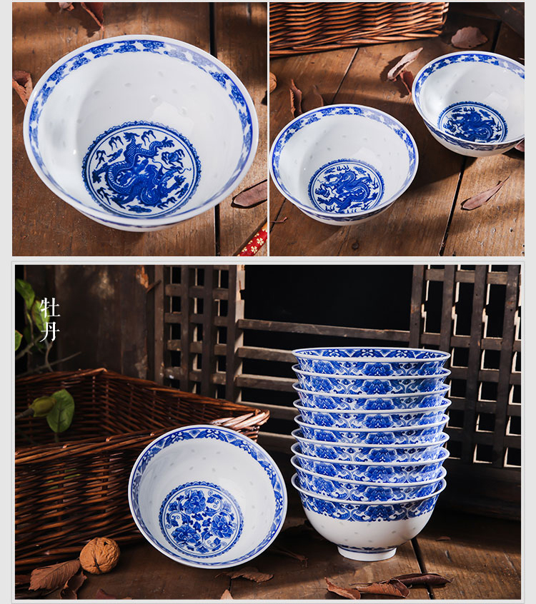 Ruichu noodle bowl, soup bowl, rice bowl, small rice bowl, Jingdezhen blue and white porcelain exquisite ceramic bowl tableware, high temperature underglaze color, peony 5 inches (1 piece)