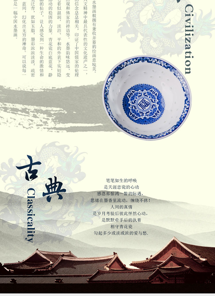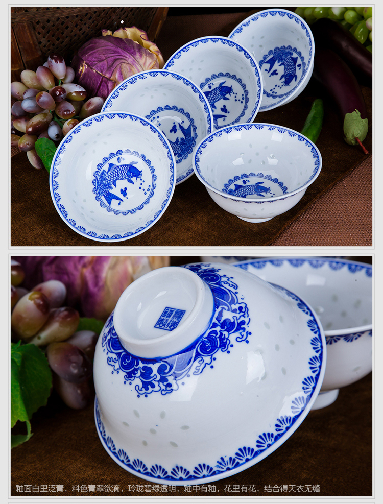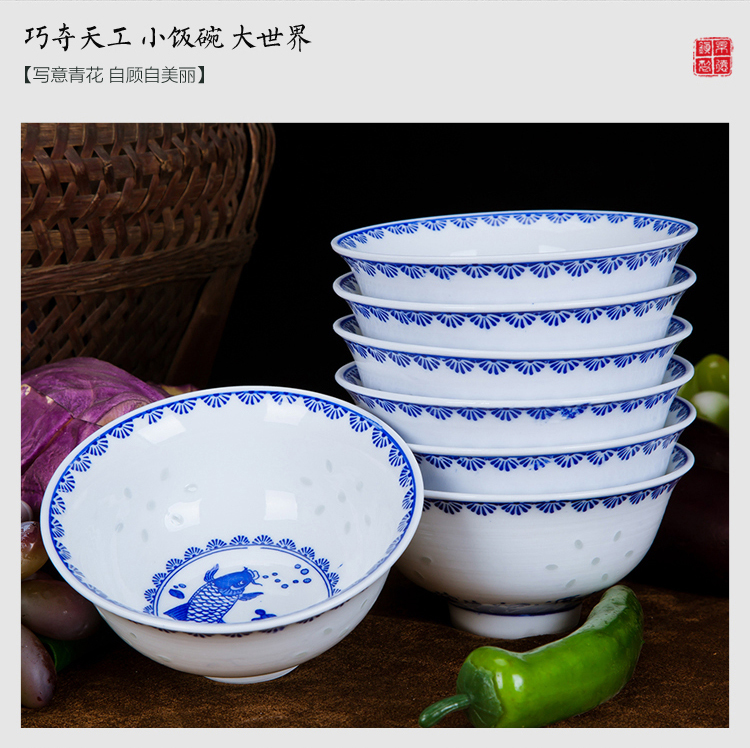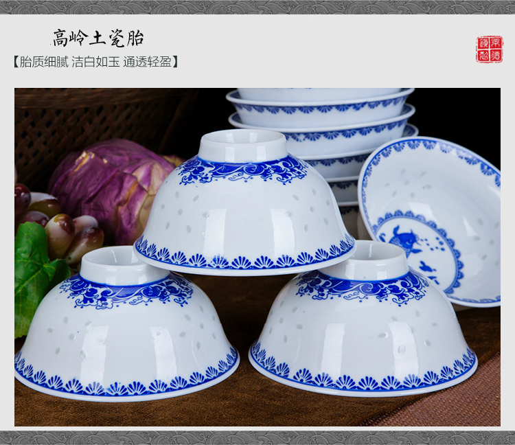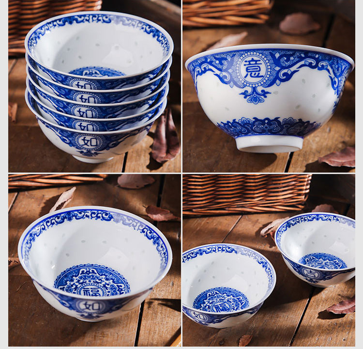 Ruichu noodle bowl, soup bowl, rice bowl, small rice bowl, Jingdezhen blue and white porcelain exquisite ceramic bowl tableware, high temperature underglaze color, peony 5 inches (1 piece)