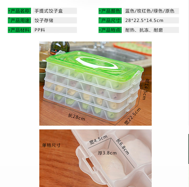 Chuyi quick-frozen dumpling box storage box frozen chaotic dumplings non-stick crisper box microwaveable refrigerated box dumpling tray 1 blue 4-layer dumpling box
