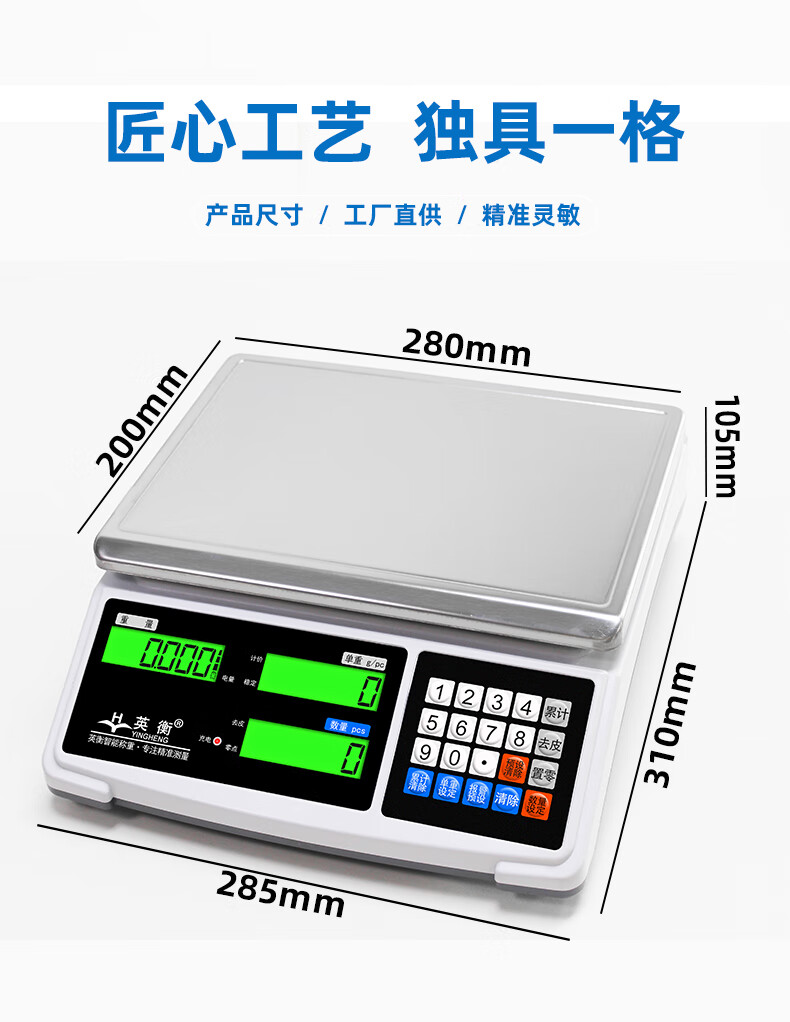 Yingheng electronic scale counting scale high-precision platform scale accurate weighing commercial scale small scale precision electronic weighing scale rechargeable range 15kg accuracy 0.2g