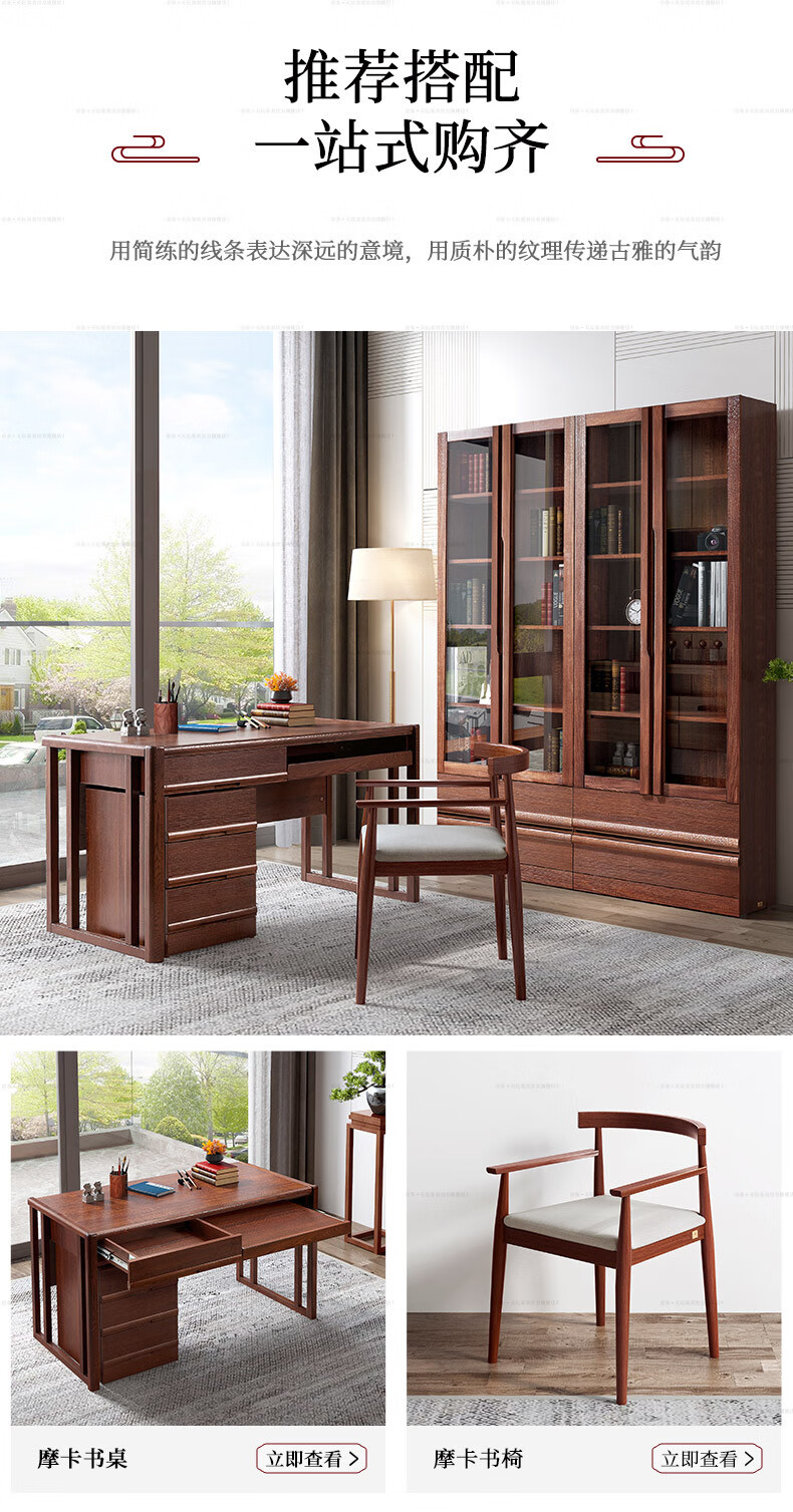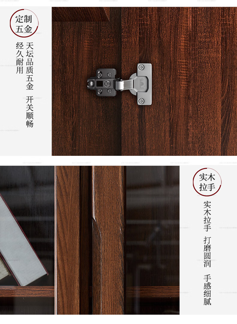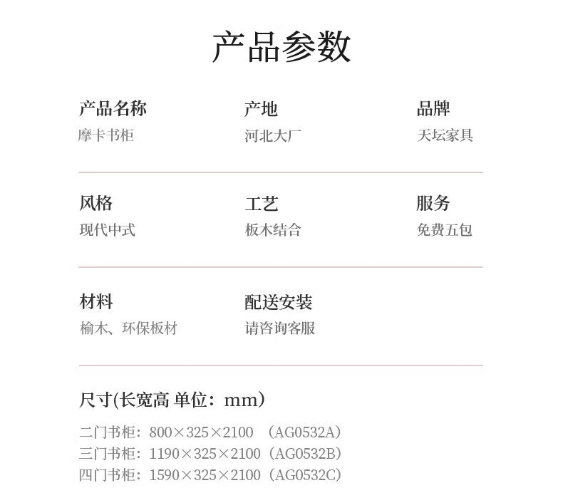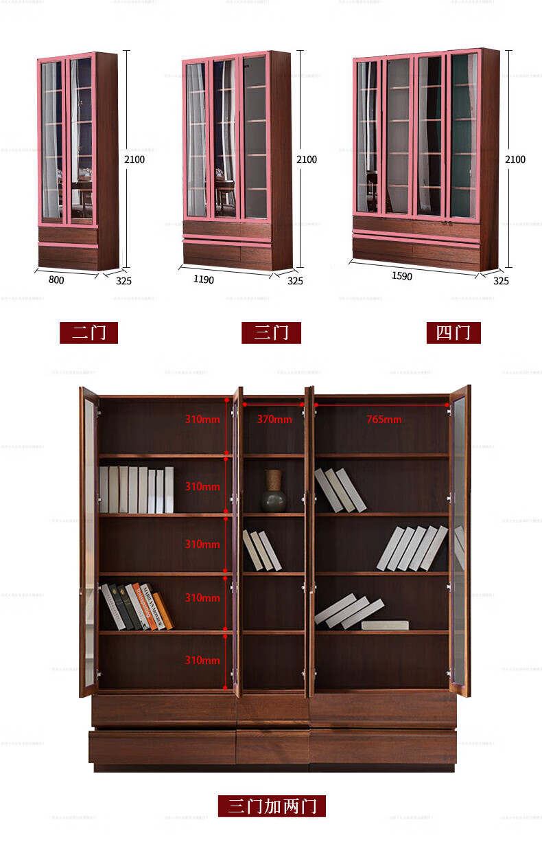 Tiantan furniture bookcase, environmentally friendly solid wood elm board wood combination bookcase, glass door bookcase, modern new Chinese style bookcase, three doors, length 1190mm, width 325mm, height 2100mm