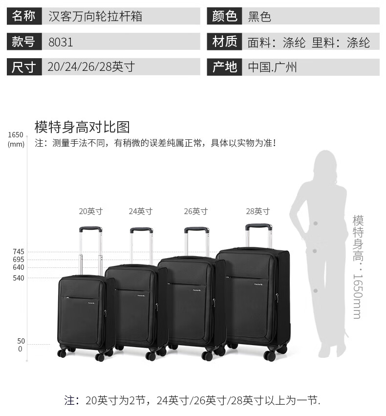Hanker luggage large-capacity trolley case for men and women business commuter boarding pass travel box code travel luggage student black wear-resistant/expandable 20 inches short-distance/30 liter boarding size