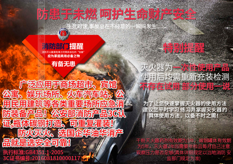 Yutu Automotive Tripod Fire Extinguisher Annual Inspection Set Car Fire Extinguisher Commercial Car Fire Extinguisher Household 1kg 1kg National Standard Dry Powder Fire Extinguisher Car Narrow Tripod + 1kg Fire Extinguisher Annual Inspection Combination Set