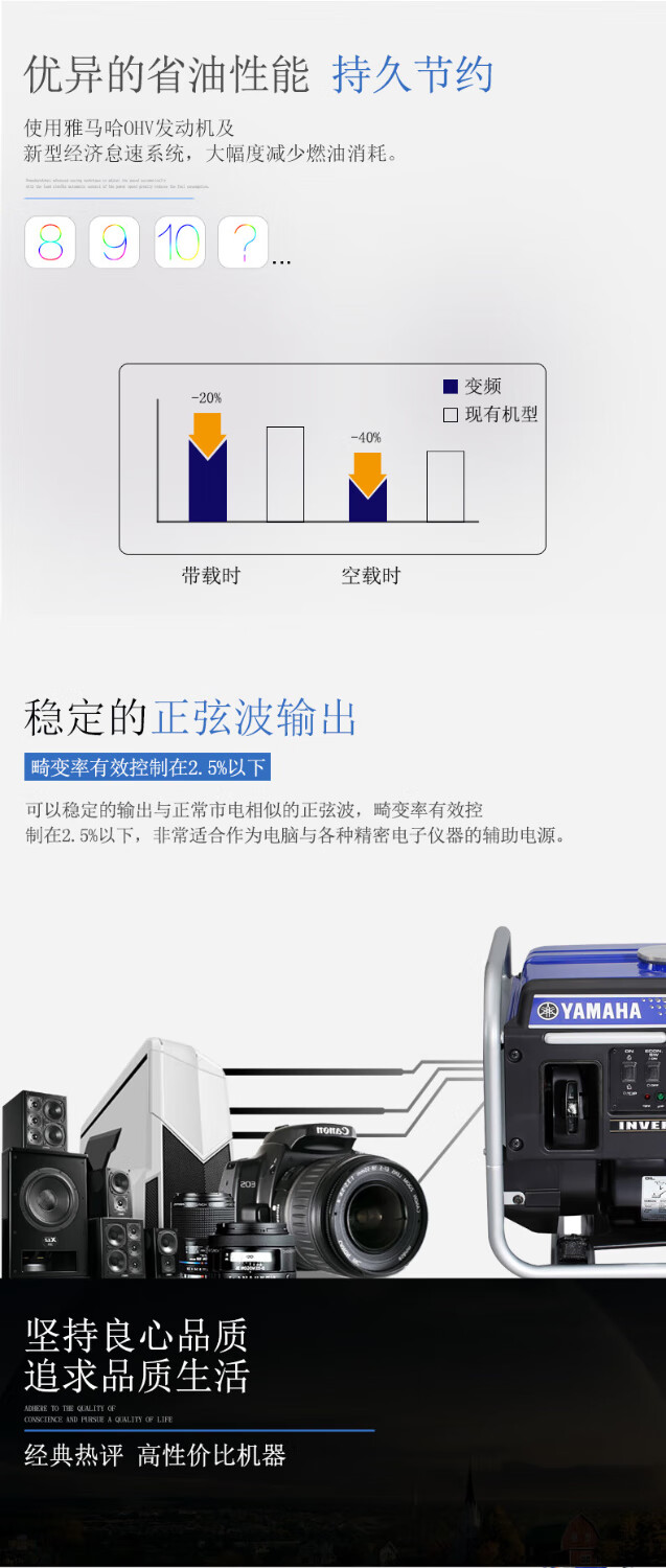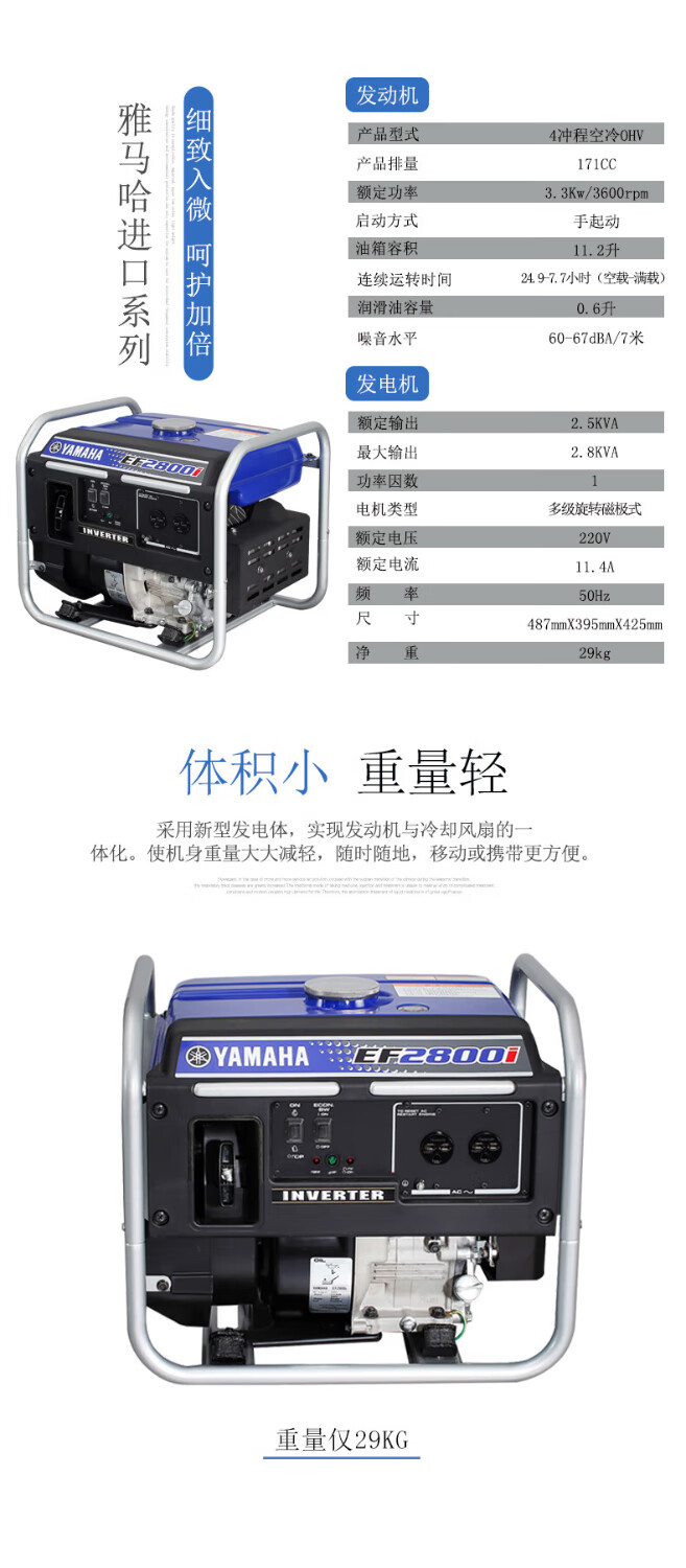Yamaha Japan imported Yamaha gasoline generator EF2800i variable frequency rated power 2.5KVA hand start standard