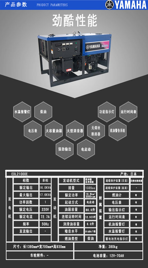 Yamaha (YAMAHA) original imported Yamaha diesel generator EDL21000E electric single-phase four-cylinder four-stroke rated 16.0KVA standard configuration