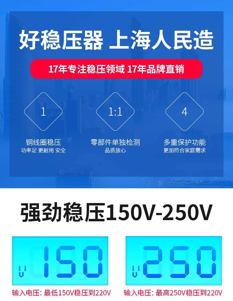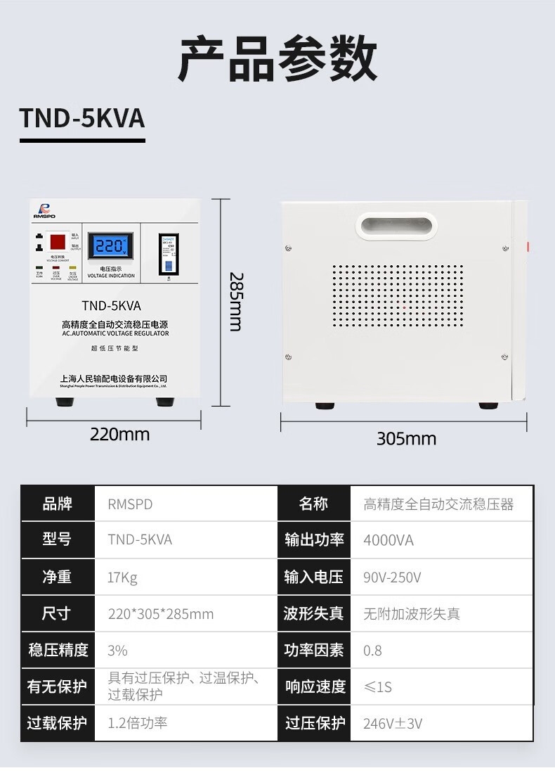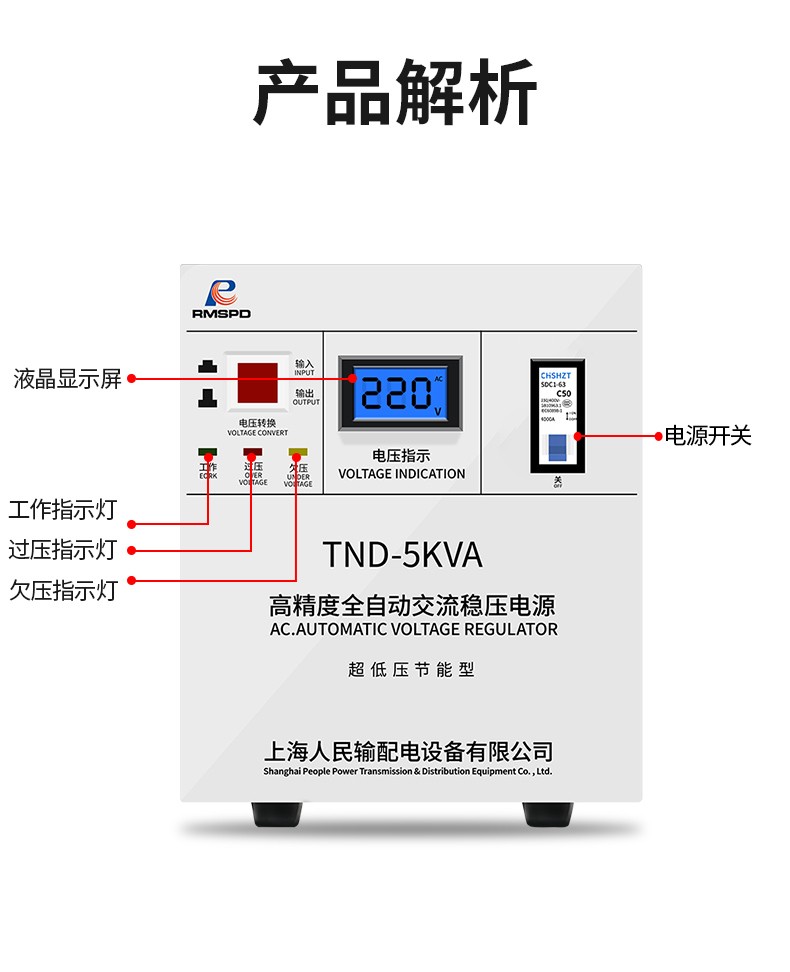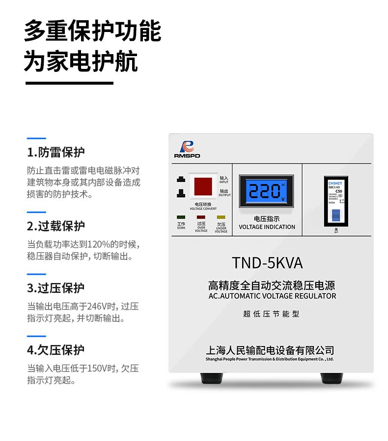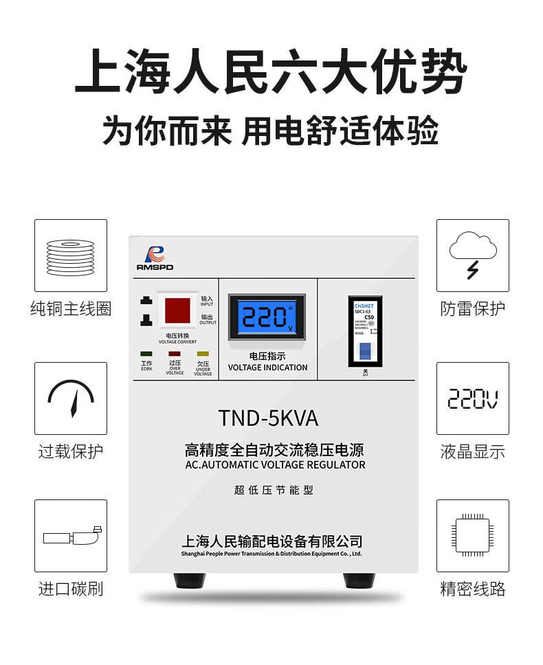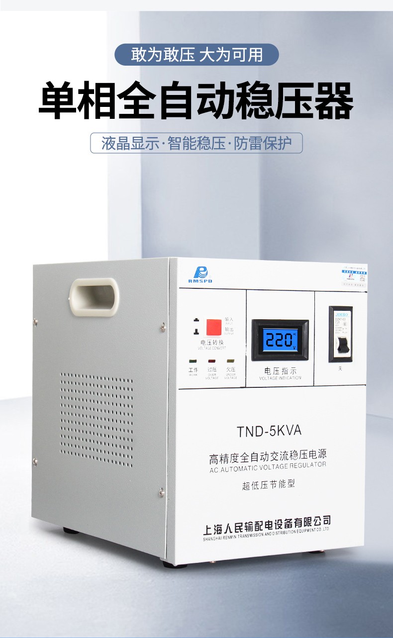 RMSPD Shanghai People's Air Conditioning Voltage Regulator 220V5000W Fully Automatic Home Voltage Regulating Computer Regulated Power Supply 5kw150V
