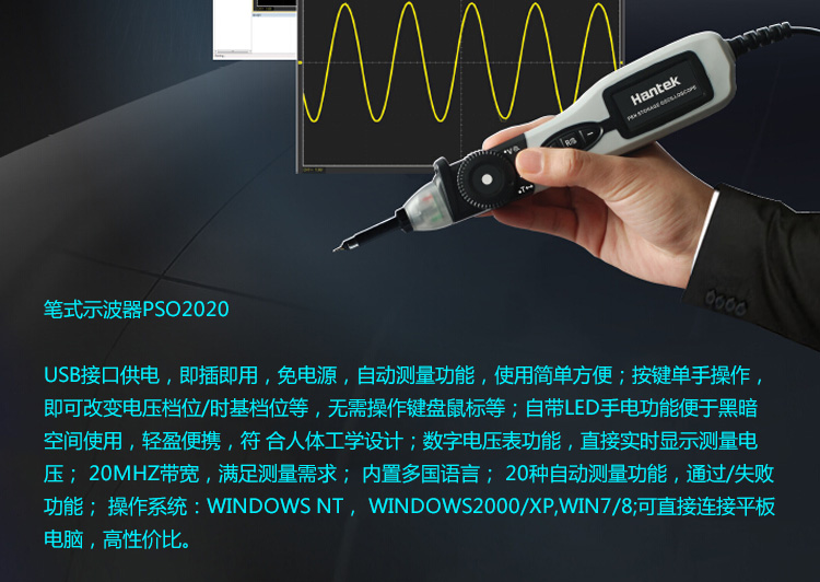 Hantek pen oscilloscope HantekPSO2020 oscilloscope pen single channel 8-bit 20MHz bandwidth