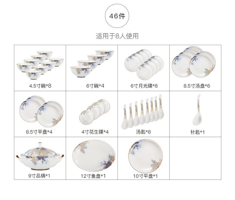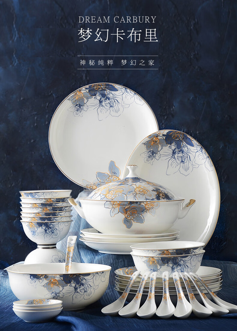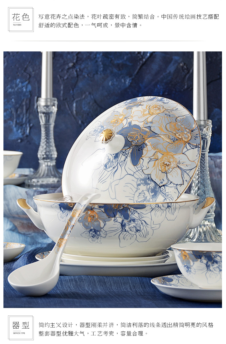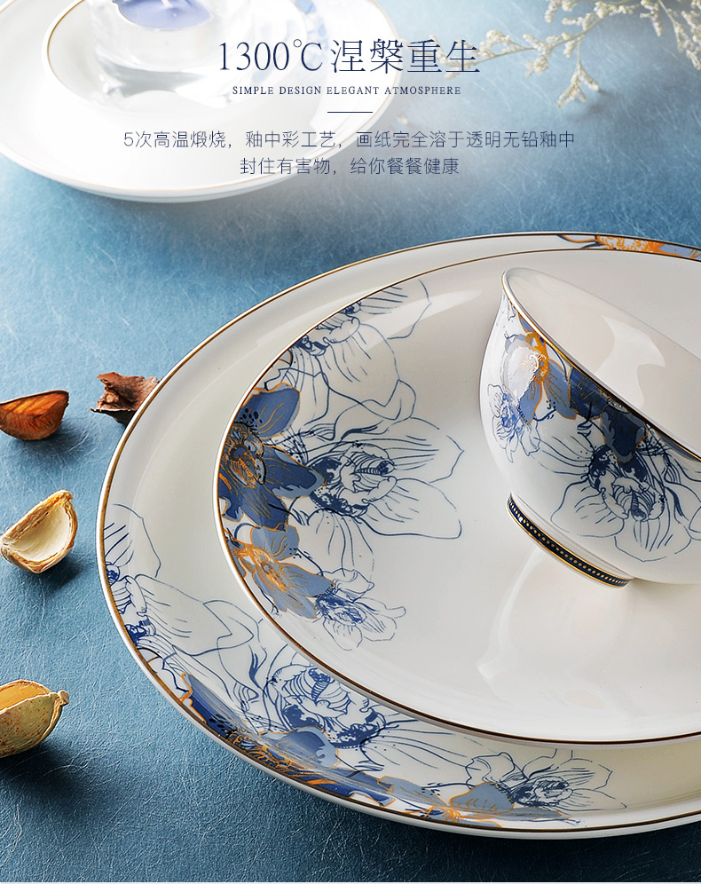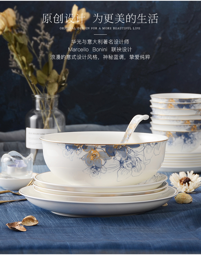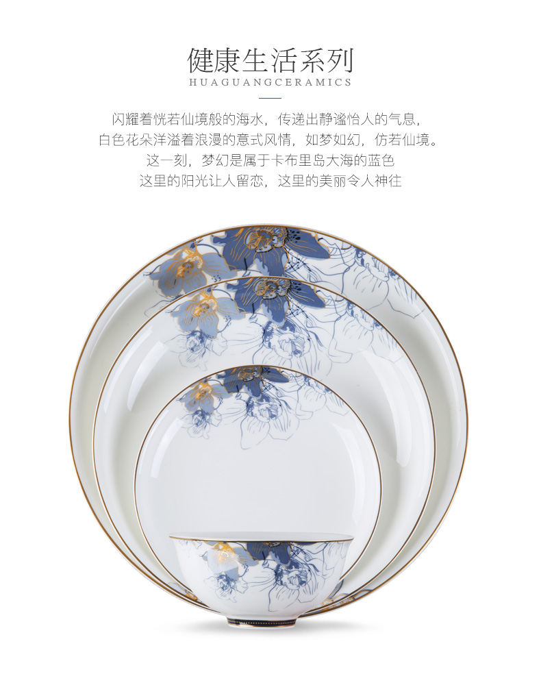 Huaguang National Porcelain Dishes Set Bone China Tableware Dishes European Household Ceramic Tableware Dream Capri Dream Capri 46 pieces