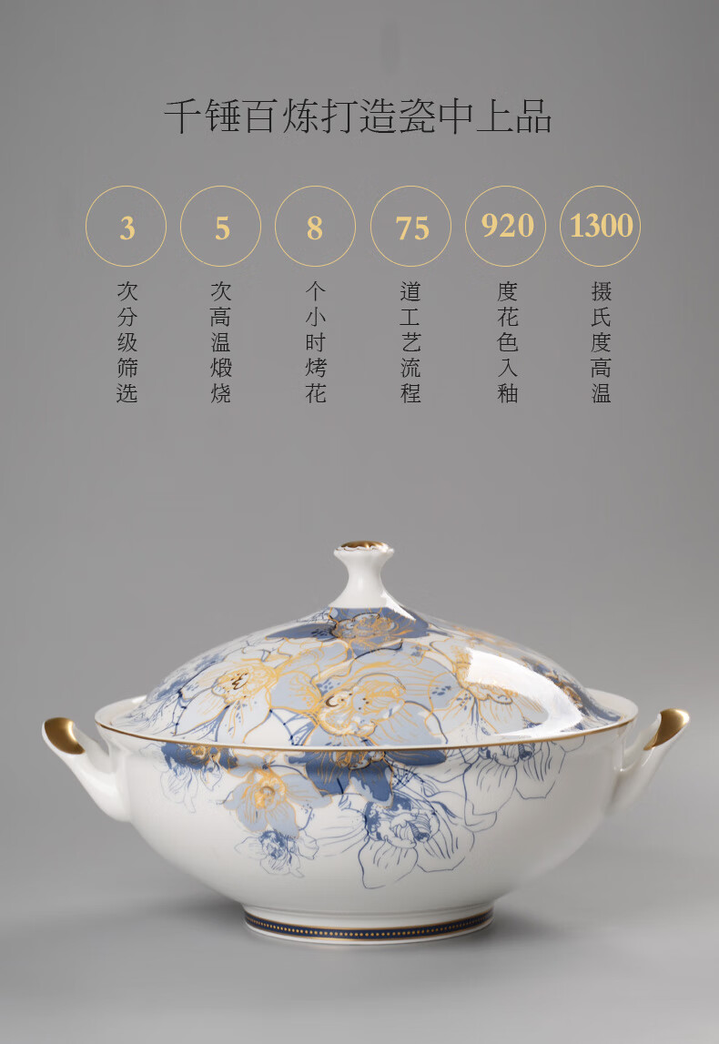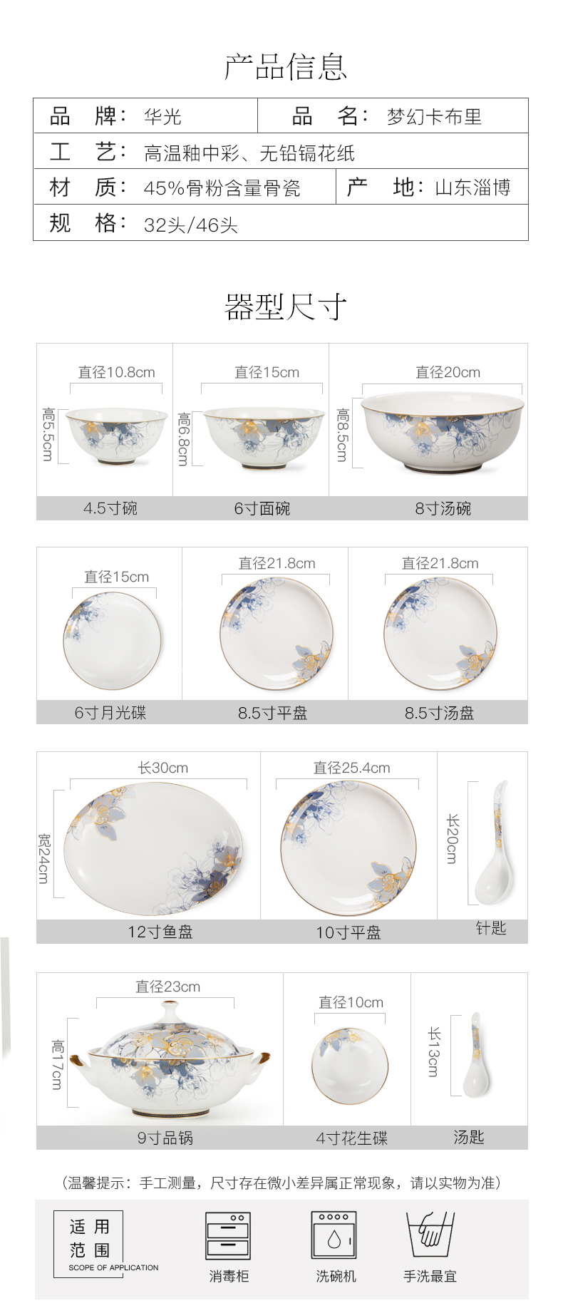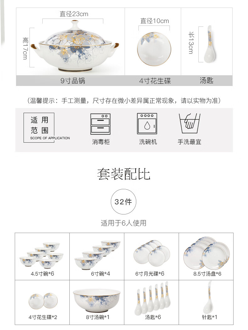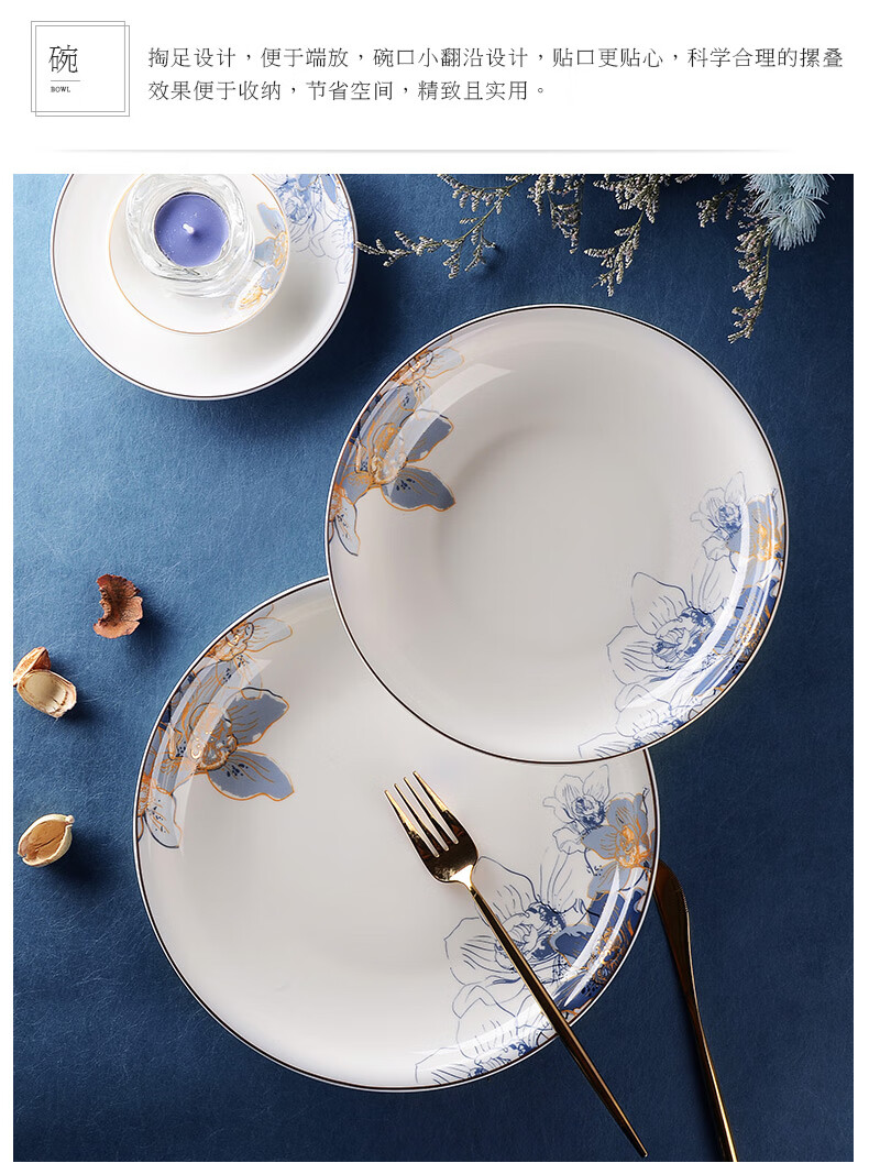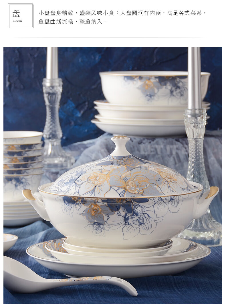Huaguang National Porcelain Dishes Set Bone China Tableware Dishes European Household Ceramic Tableware Dream Capri Dream Capri 46 pieces