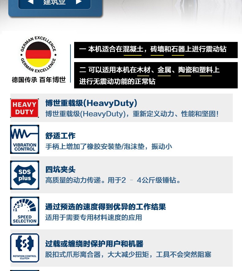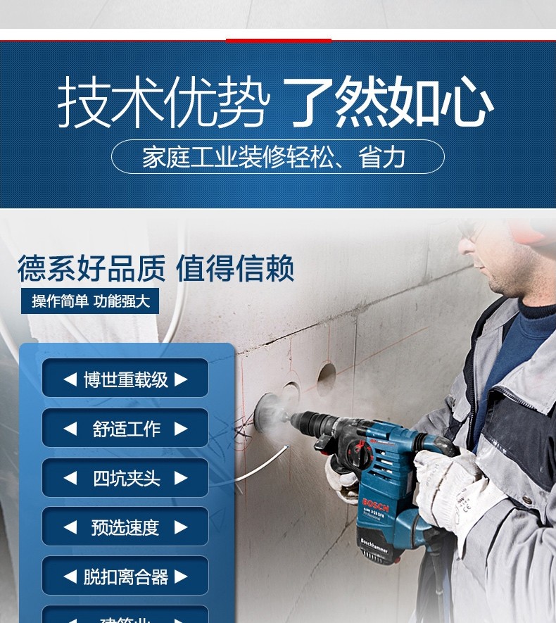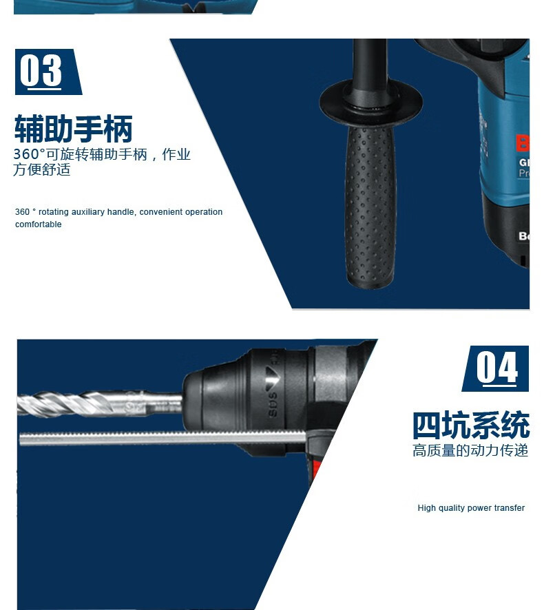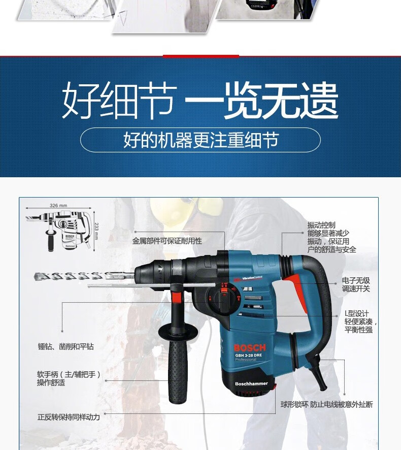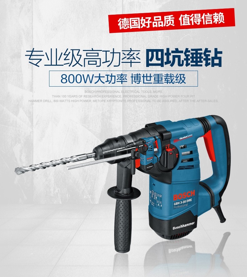 Bosch (BOSCH) electric hammer impact drill electric pick three-purpose two pits and two slots GBH3-28DRE high power 800W concrete drilling chisel standard GBH3-28DRE