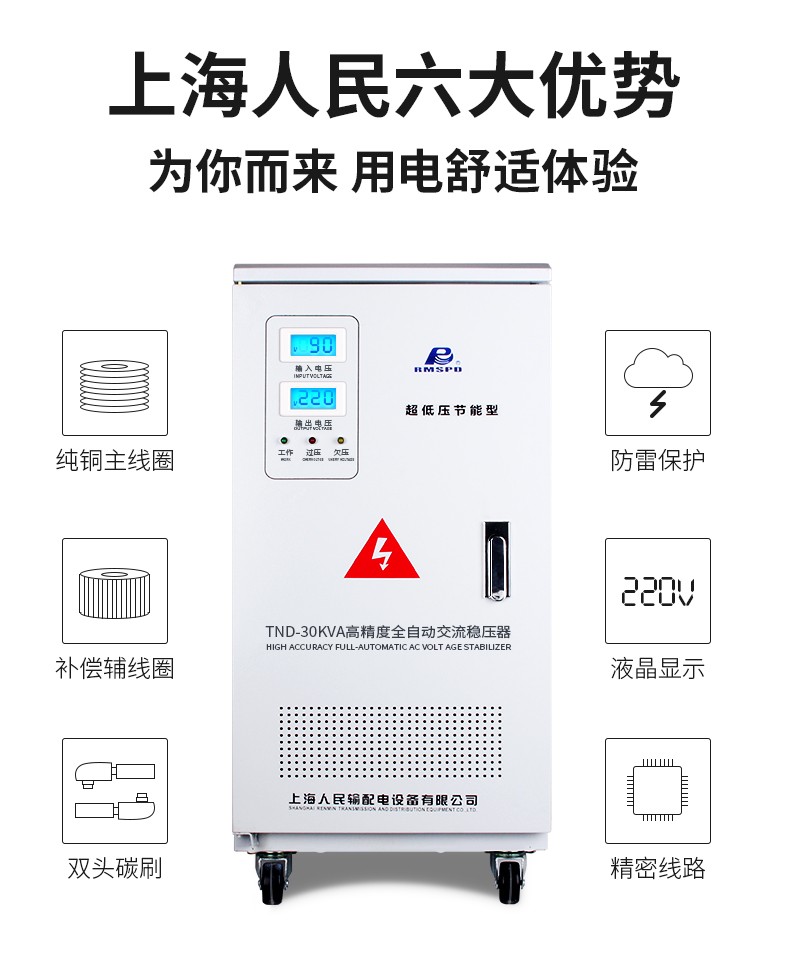 RMSPD Shanghai People's Air Conditioning Voltage Regulator 220V fully automatic household single-phase voltage regulator 30kw ultra-low voltage 90v voltage regulator