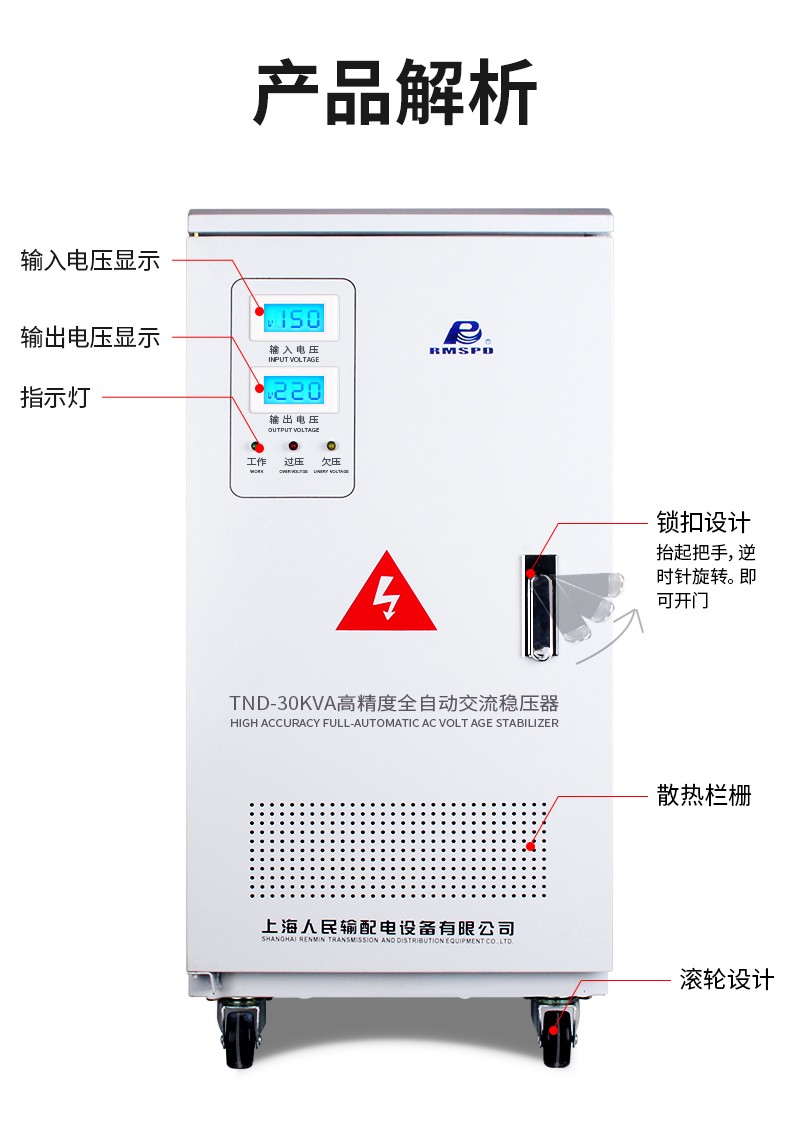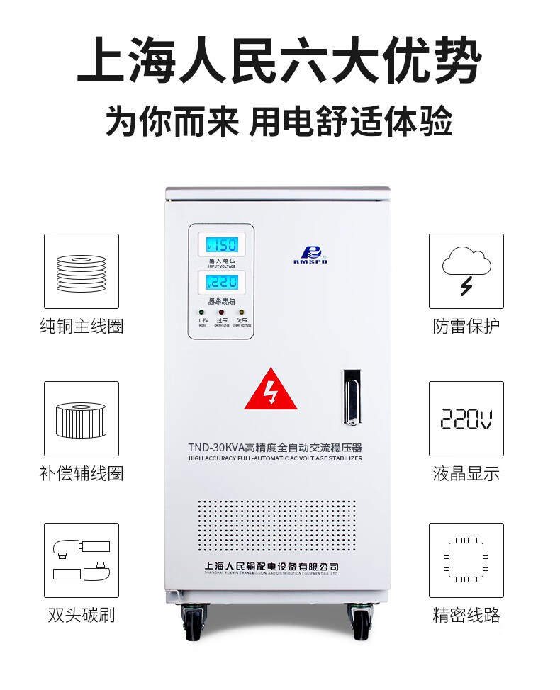 RMSPD Shanghai People's single-phase voltage regulator 220v30kw air conditioner refrigerator fully automatic household voltage regulator 30000W150V