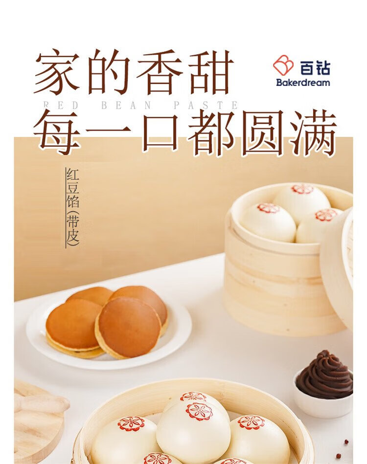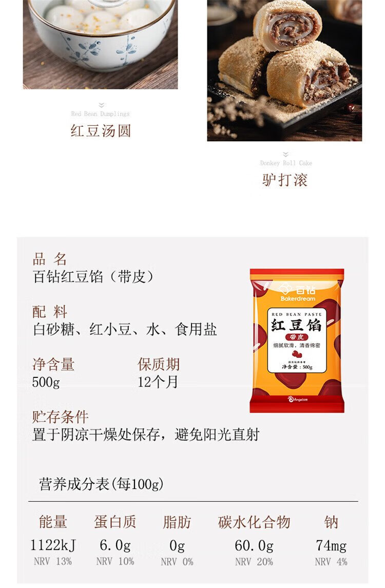 Baizuan red bean filling 500g home-baked red bean paste, rice dumplings, bean paste buns, donkey rolling egg yolk cake ingredients