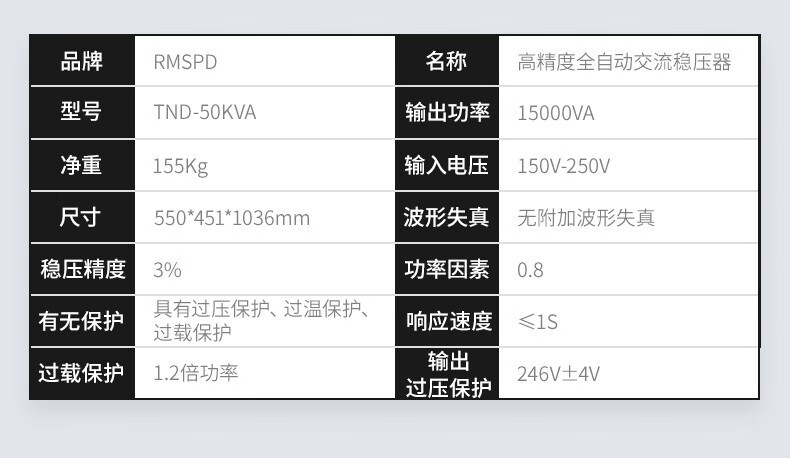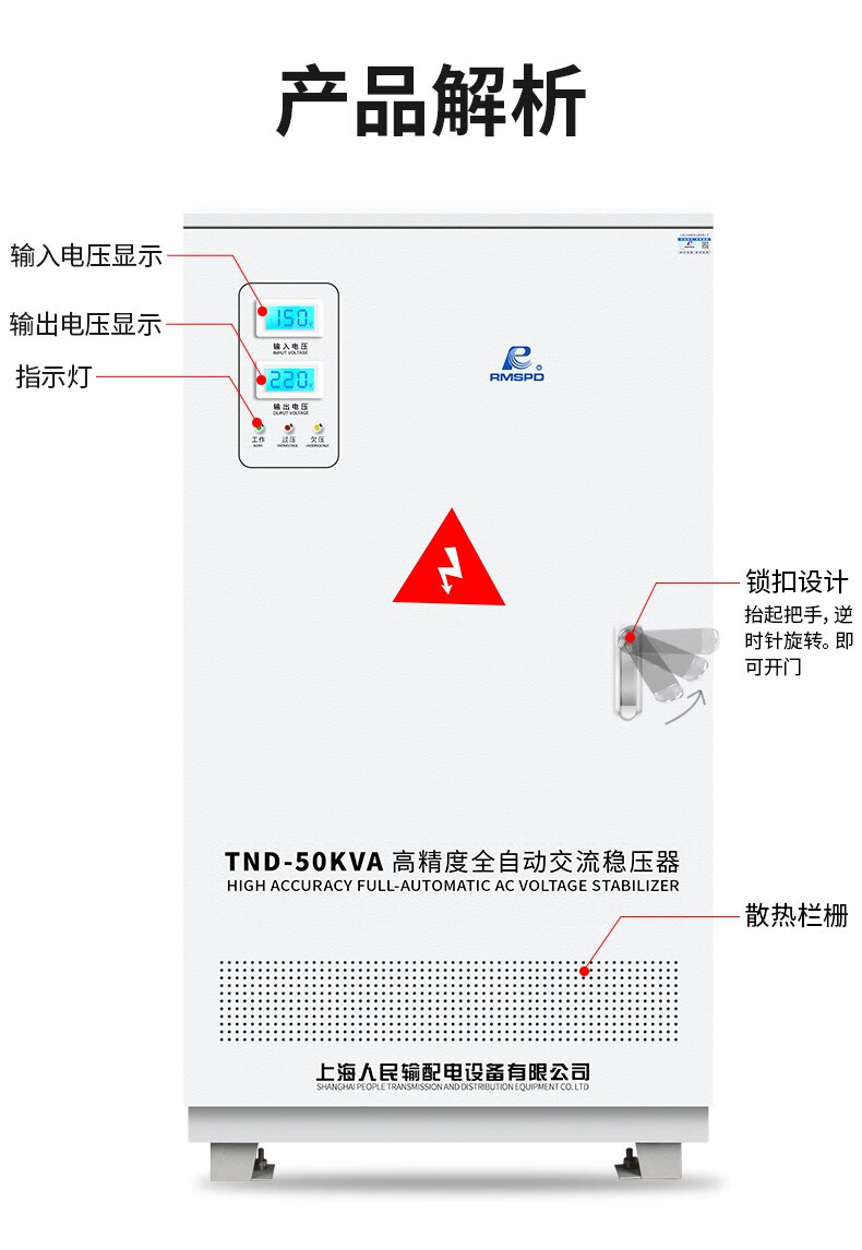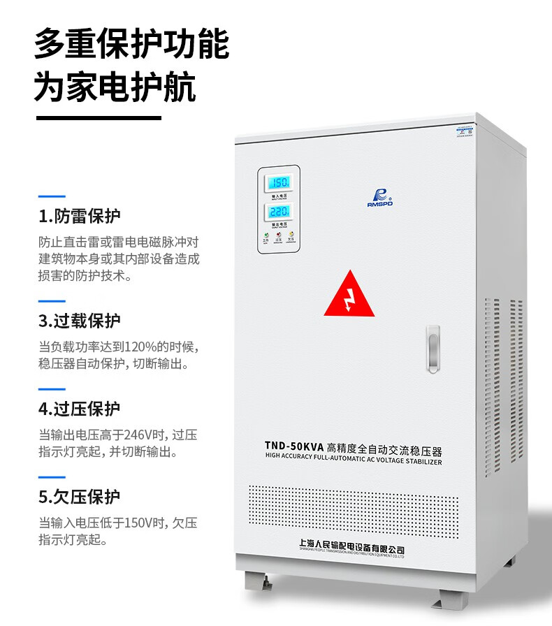 RMSPD Shanghai People's Voltage Stabilizer 50kw220V high-power fully automatic single-phase home elevator water pump voltage stabilization and boosting