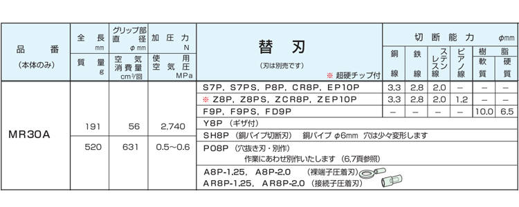 SOLa Japan imported pneumatic scissors NILE Leilai pneumatic scissors head copper iron wire heavy-duty fast cutting pneumatic scissors universal blade (S7P)