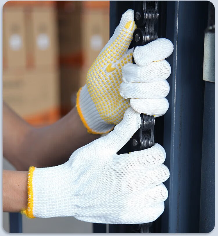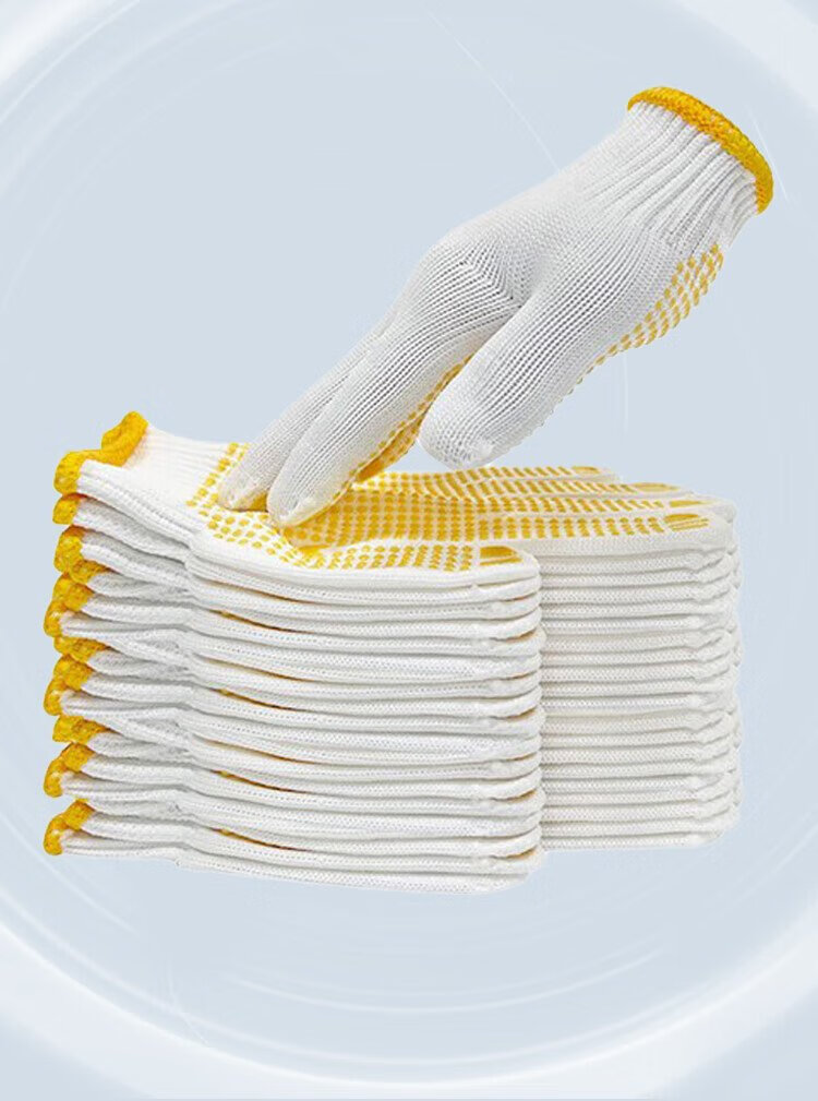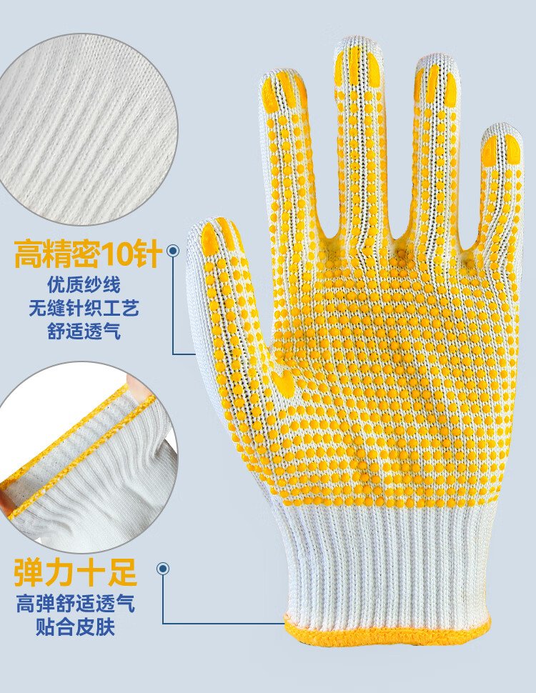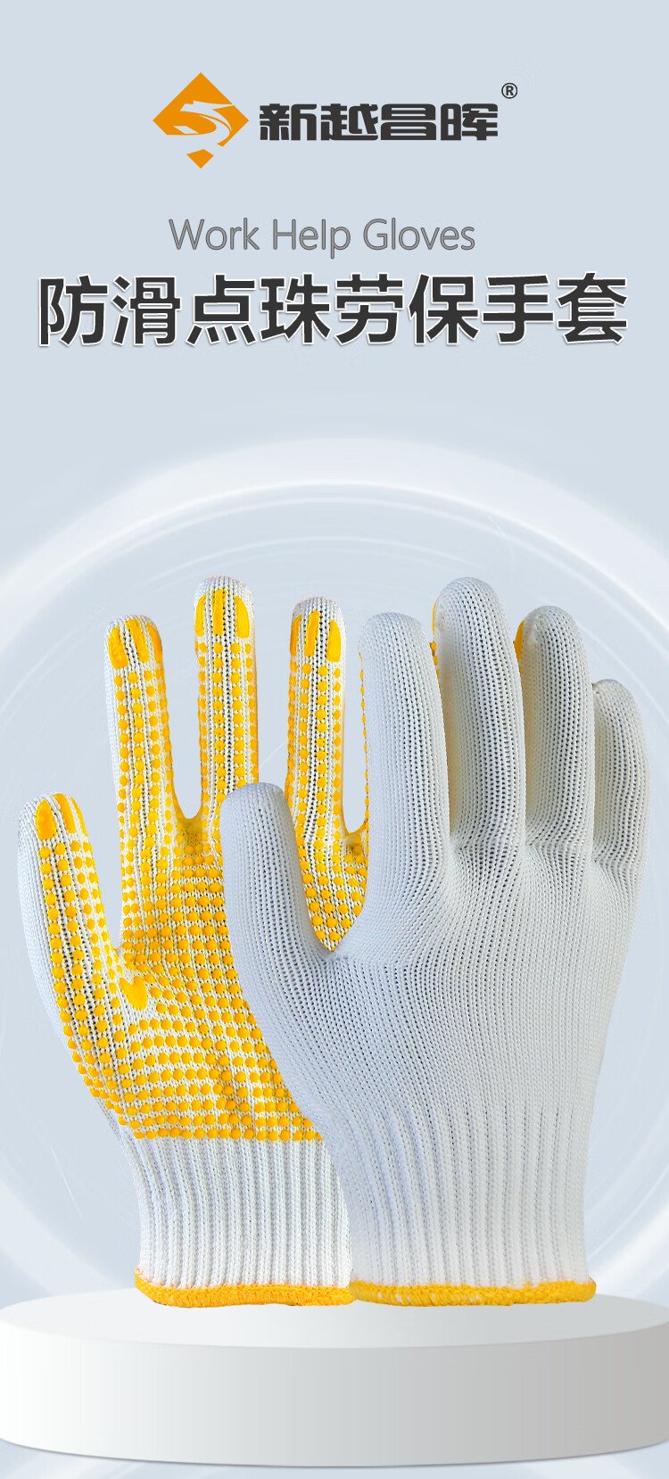 Xinyue Changhui Dot-molded labor protection gloves Dot-molded cotton gloves 12 pairs/pack Yellow Thickened non-slip and wear-resistant Outdoor construction moving and handling One size fits all Genuine licensed goods