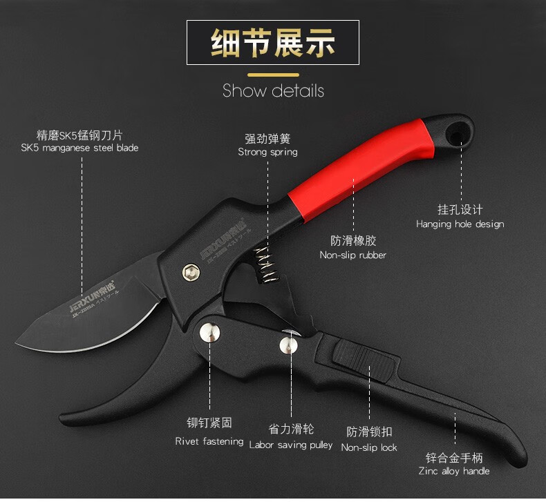 JERXUN pruning shears, garden scissors, branches, fruit tree scissors, gardening shears, flower shears, powerful thick branch shears, floral scissors tools, pulley garden shears
