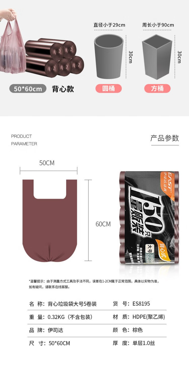 Istar vest garbage bag brown 50*60cm*150 pieces single side 1 silk thickened portable kitchen household not easy to break
