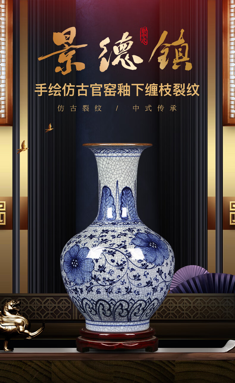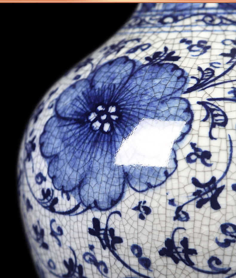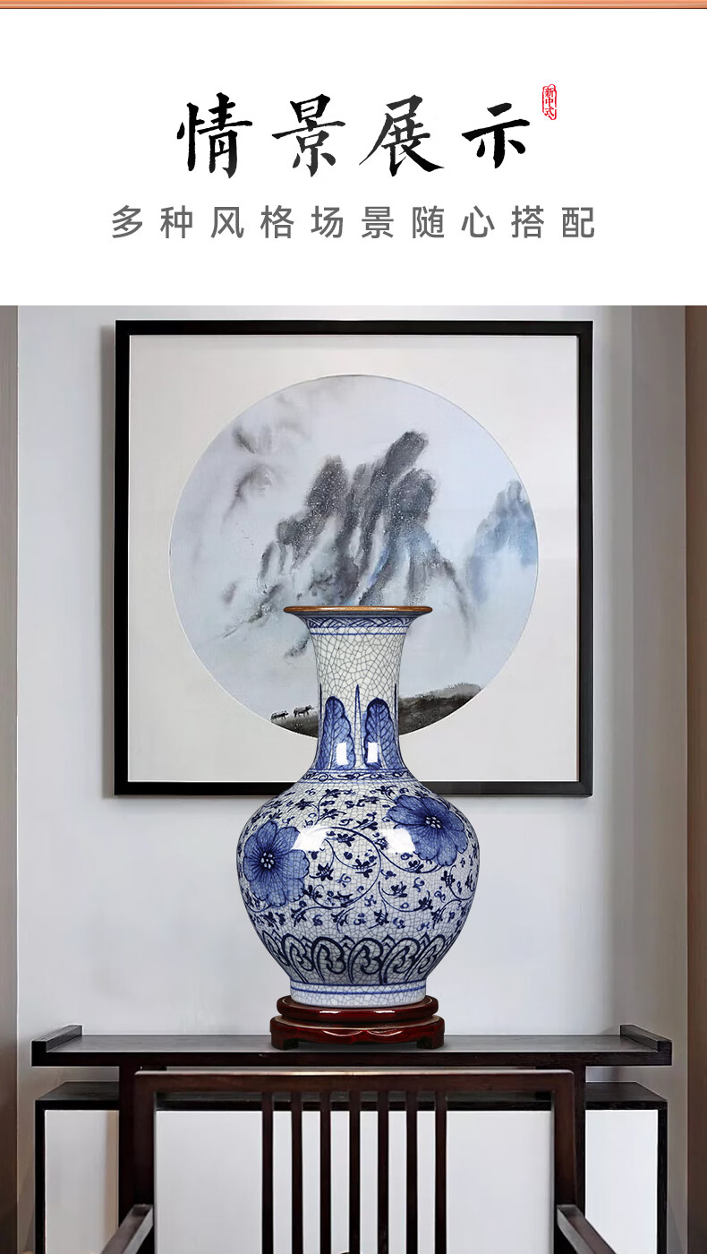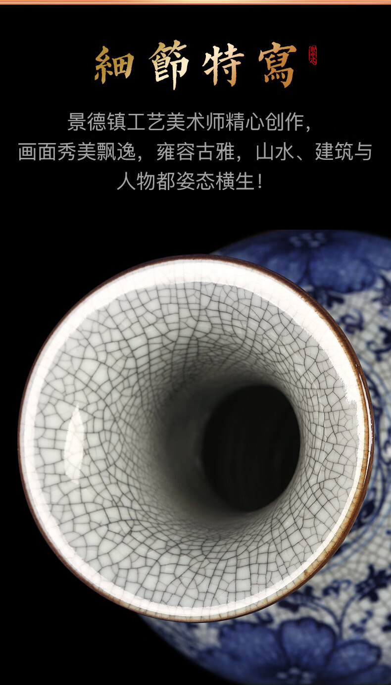 Proud Jingdezhen Ceramics Antique Chinese Blue and White Porcelain Vase Crafts Living Room Ornaments Archaeological Stand Office Decoration Hand-Painted Official Kiln Crack Appreciation Vase + Base + Certificate