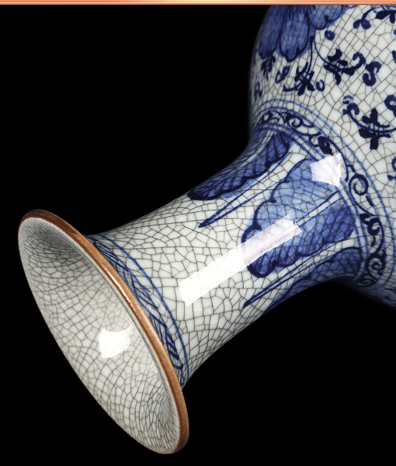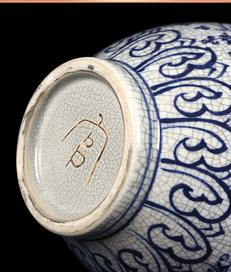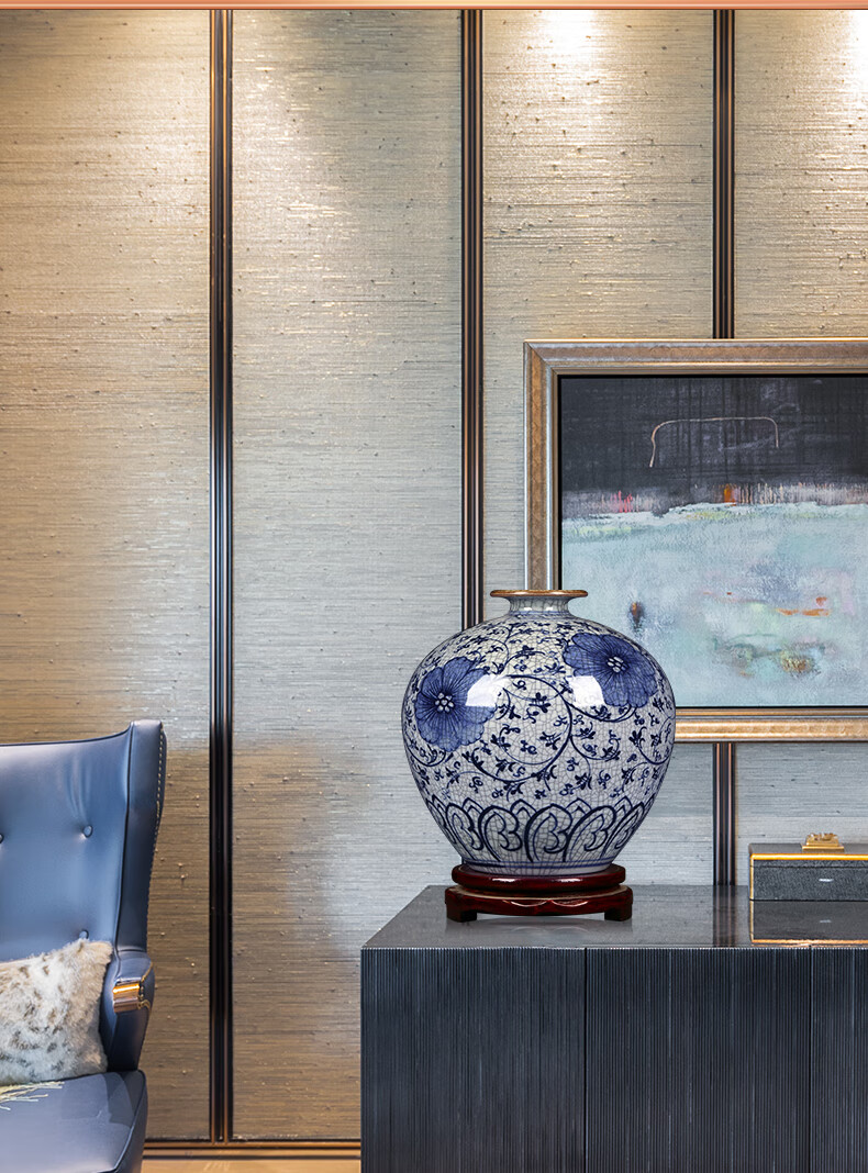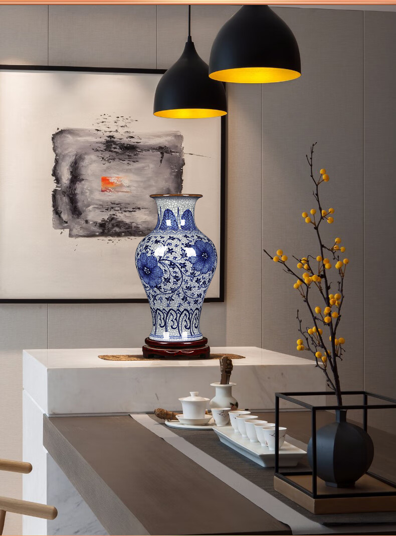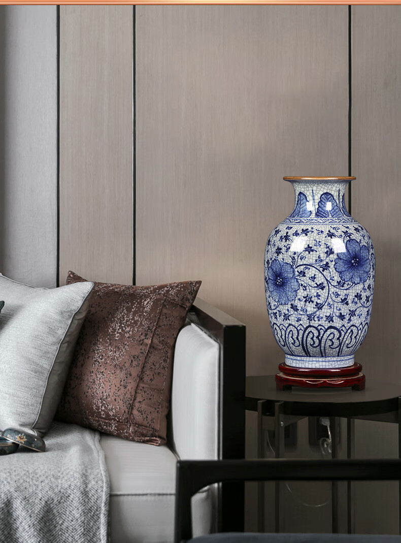 Proud Jingdezhen Ceramics Antique Chinese Blue and White Porcelain Vase Crafts Living Room Ornaments Archaeological Stand Office Decoration Hand-Painted Official Kiln Crack Appreciation Vase + Base + Certificate