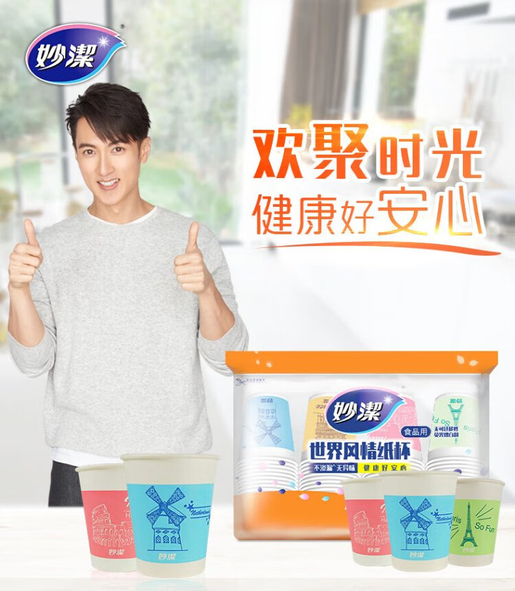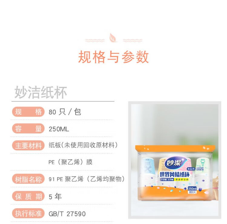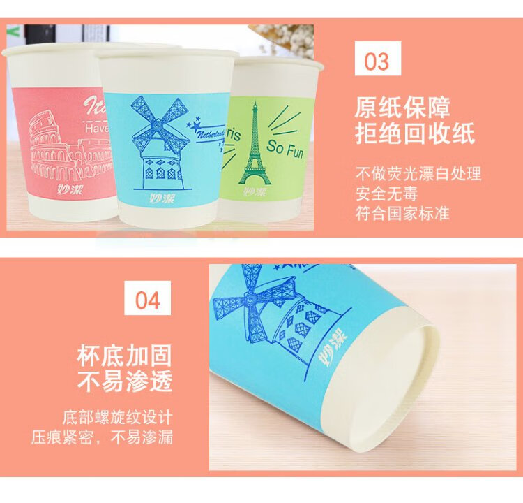 Miaojie disposable paper cup tea thickened food grade business cup 250ml*80 pieces