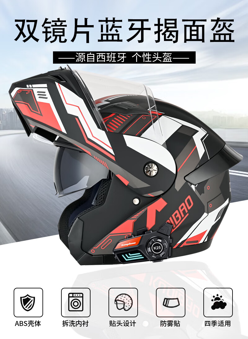 Coolqibao anti-fog dual-lens face-up helmet motorcycle Bluetooth helmet motorcycle full-cover helmet men and women long battery life mechanical gray flower (without Bluetooth) XXL
