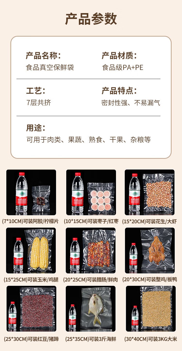 Baijie vacuum seal bag food grade household vacuum bag food vacuum seal bag vacuum packaging bag plastic seal bag fresh-keeping bag vacuum machine compression storage bag 15*25cm
