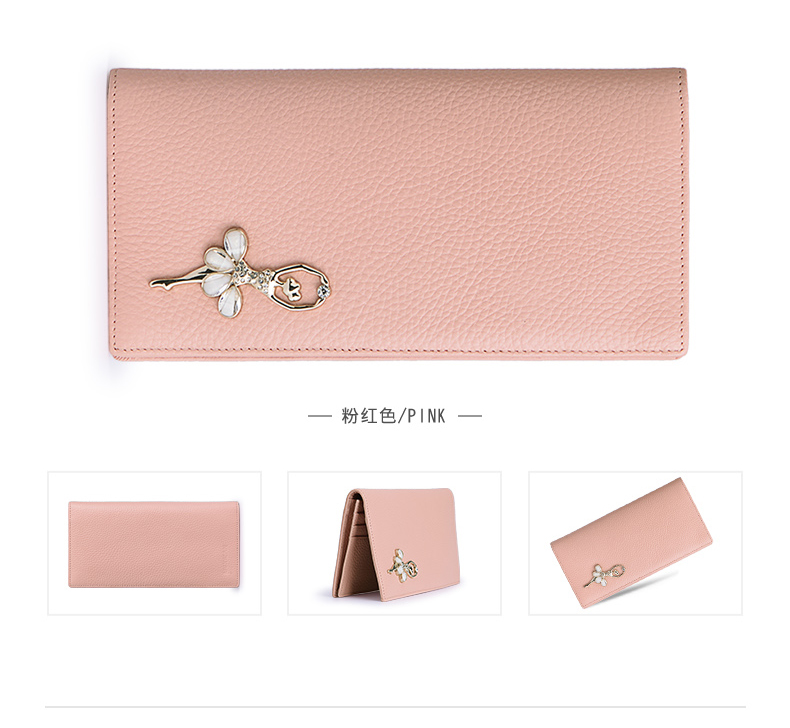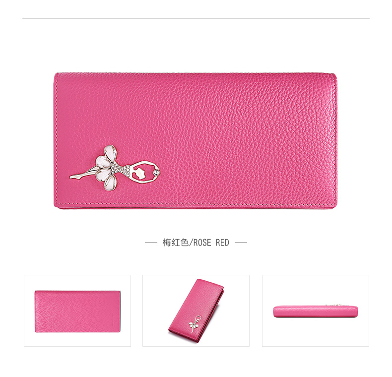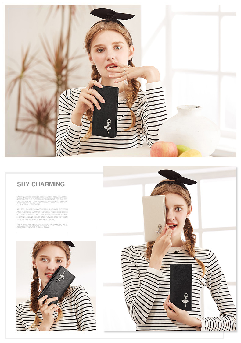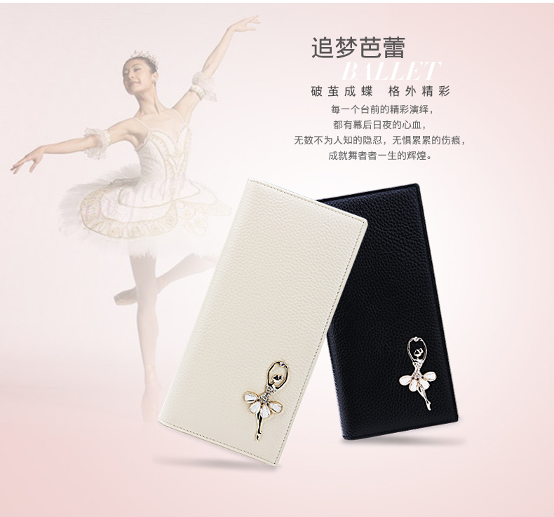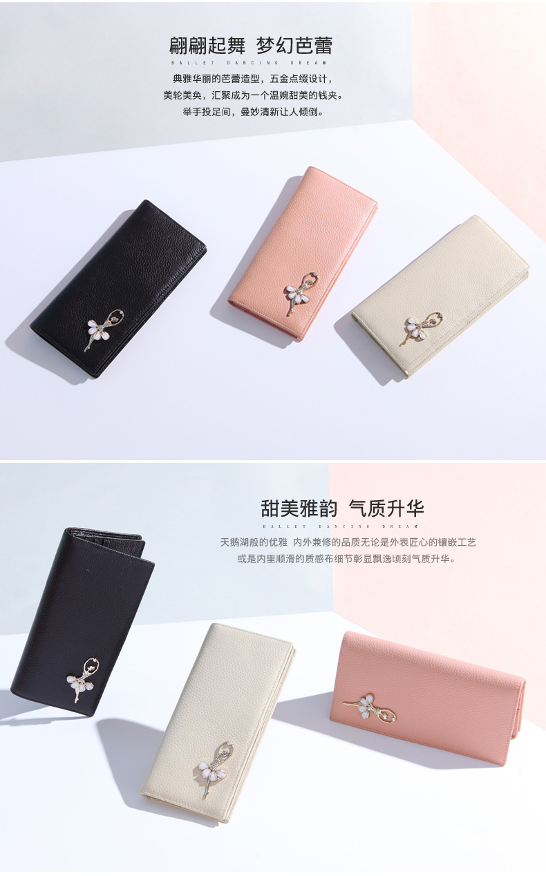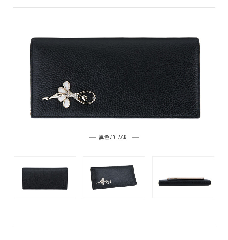 Scarecrow Women's Wallet Long Cowhide Fashion Korean Version Trendy Sweet Ballerina Girl Multi-Card Slot Hand Wallet Black
