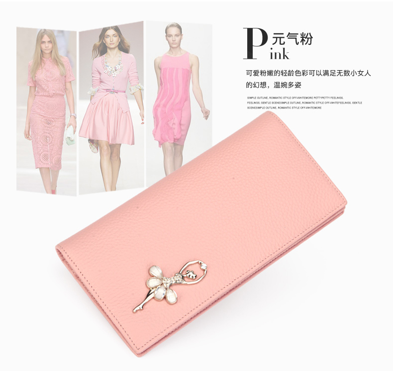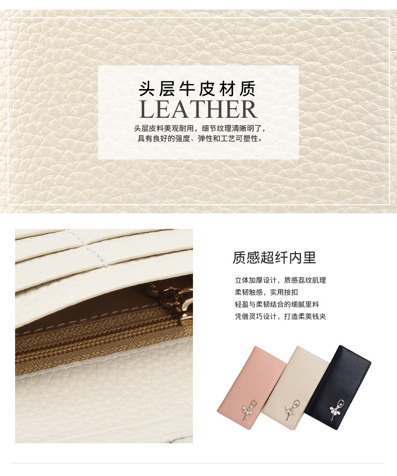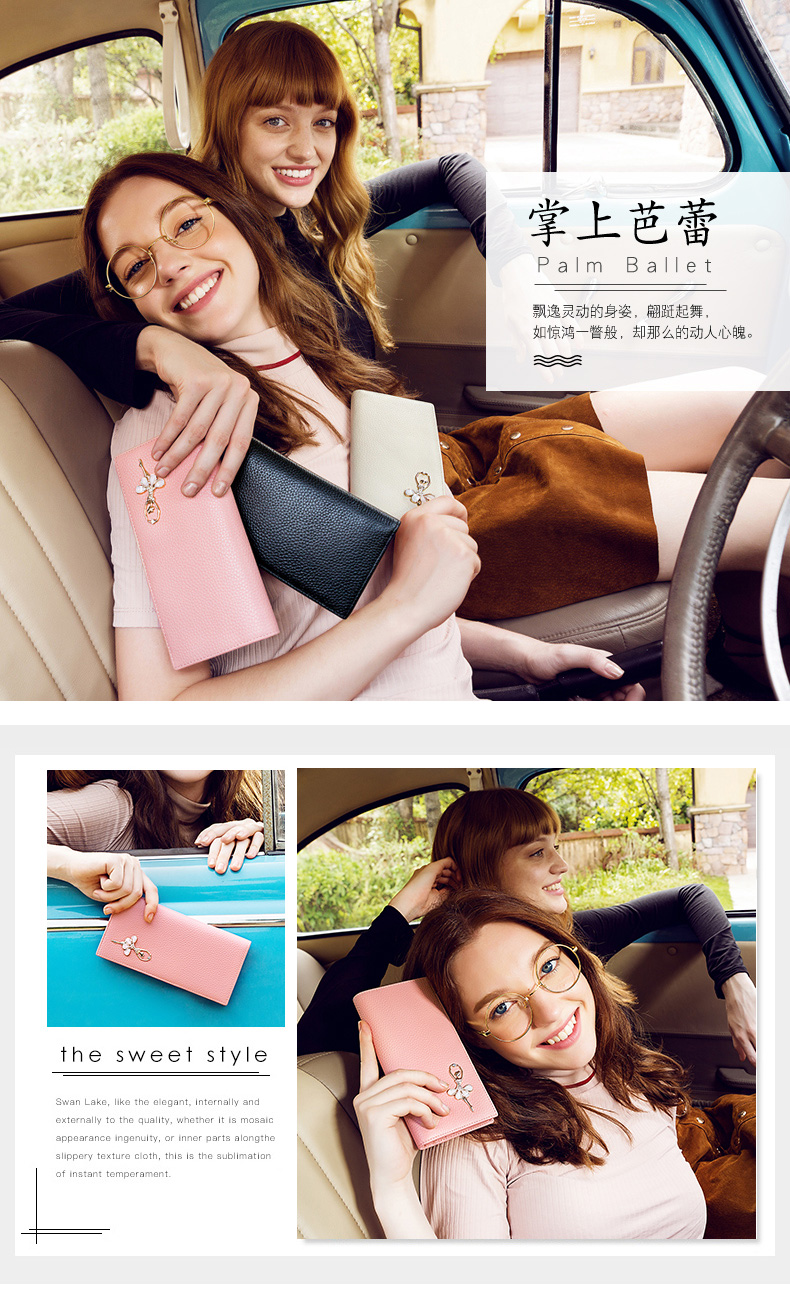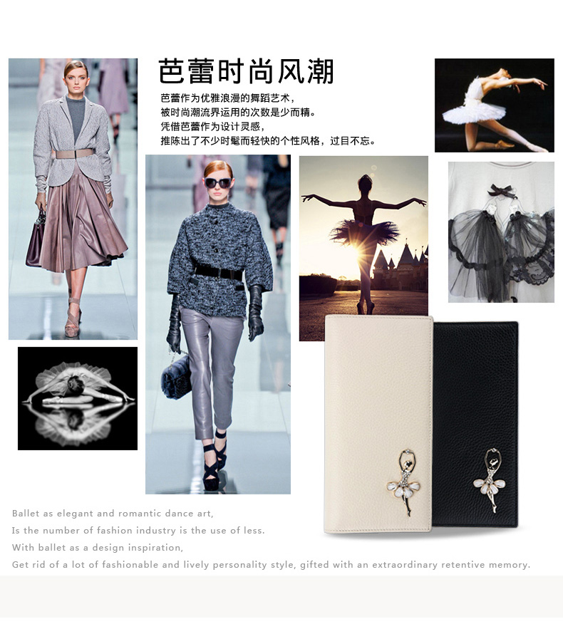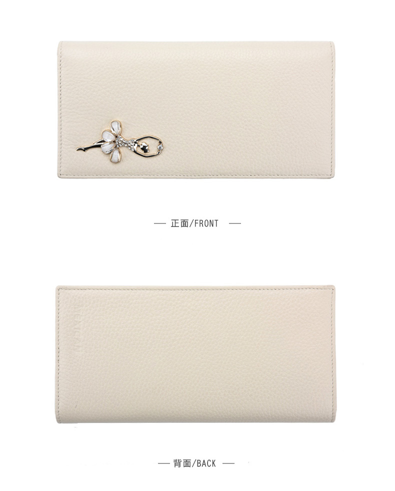 Scarecrow Women's Wallet Long Cowhide Fashion Korean Version Trendy Sweet Ballerina Girl Multi-Card Slot Hand Wallet Black