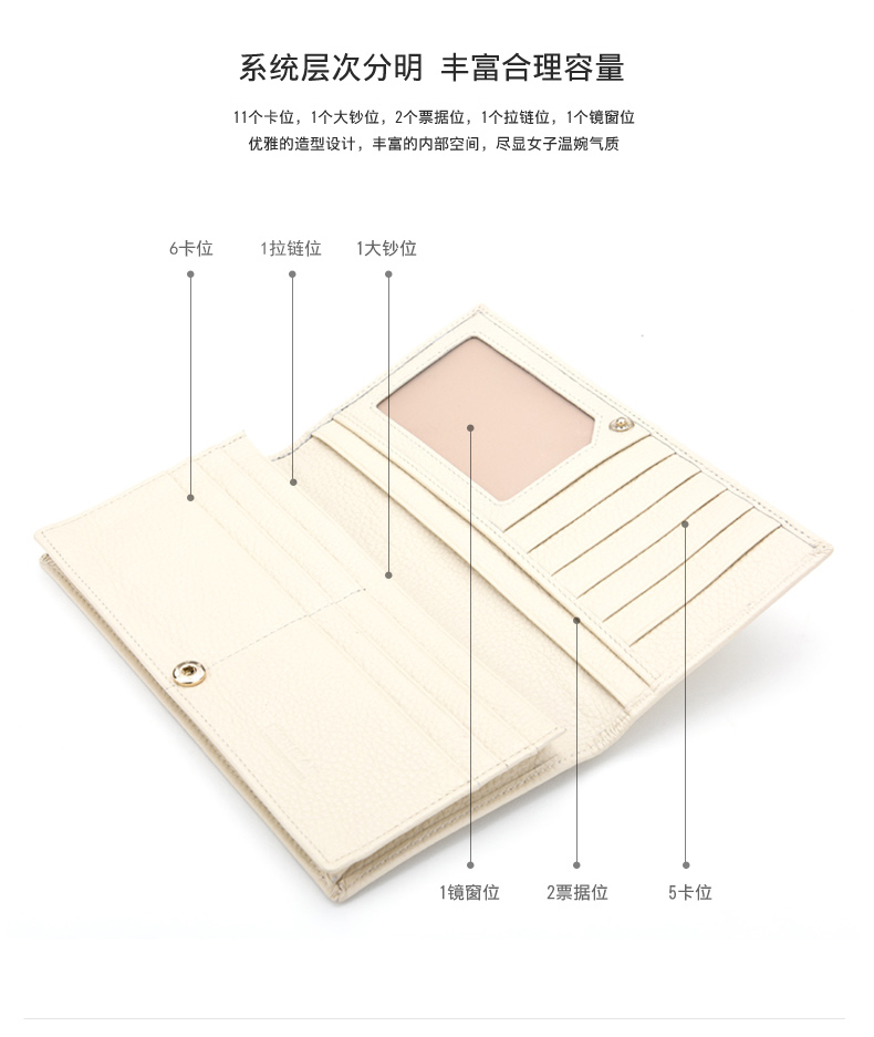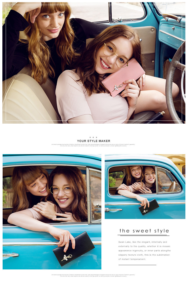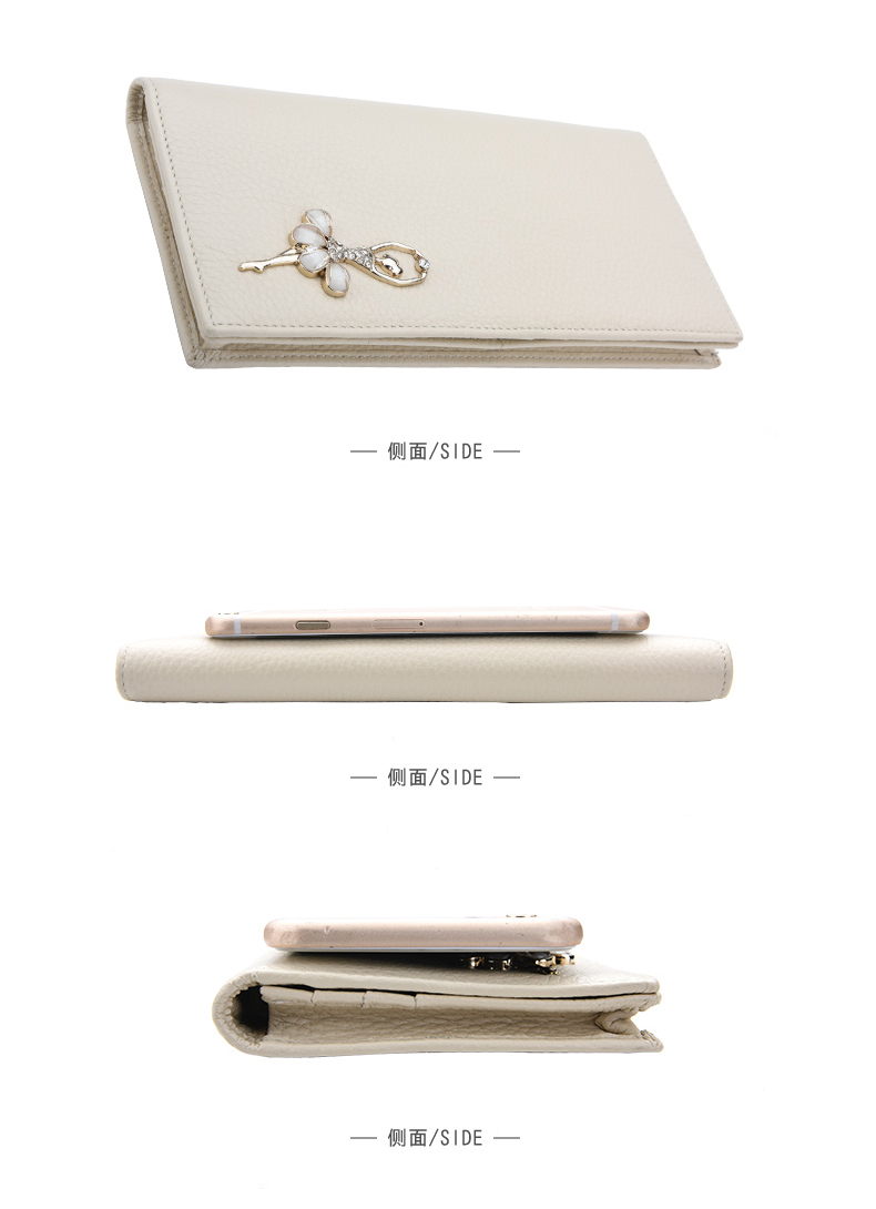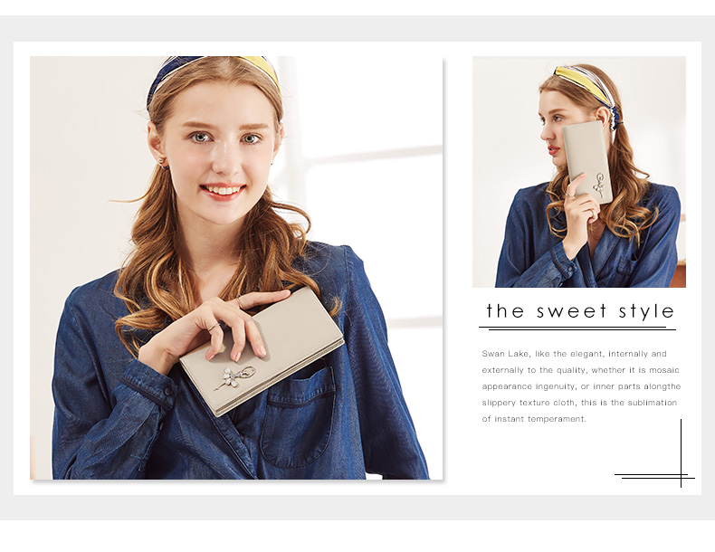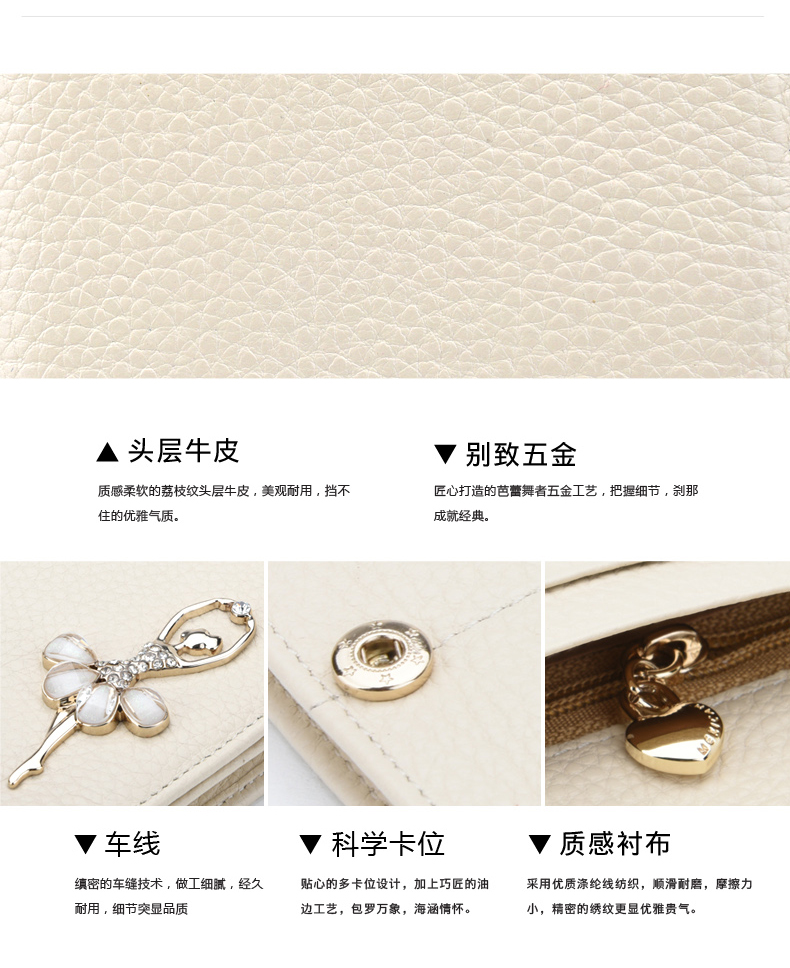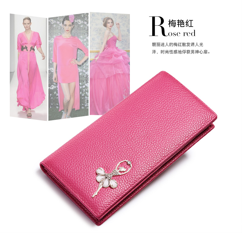 Scarecrow Women's Wallet Long Cowhide Fashion Korean Version Trendy Sweet Ballerina Girl Multi-Card Slot Hand Wallet Black
