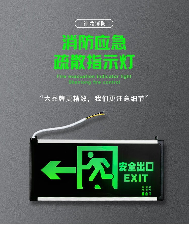 Shenlong emergency light, fire evacuation indicator light, safety exit light, fire sign light, single side left