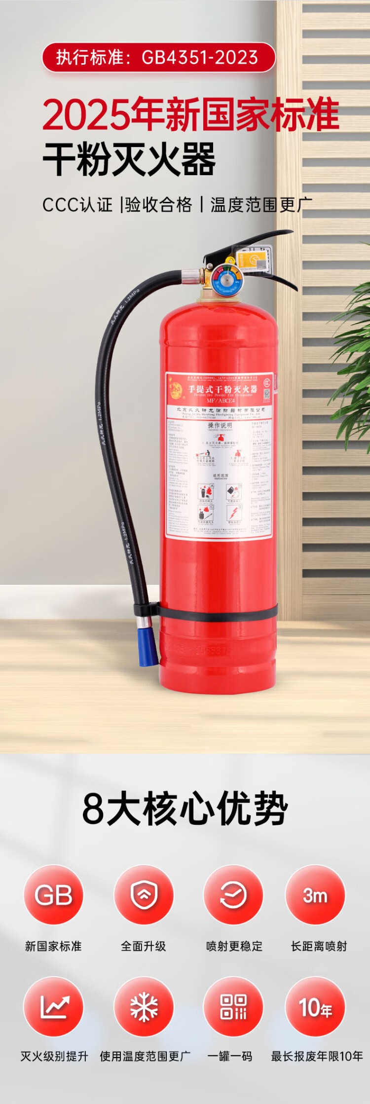 Shenlong 25-year-old new national standard dry powder fire extinguisher 4kg commercial enterprise factory vehicle-mounted fire-fighting equipment MF/ABCE4