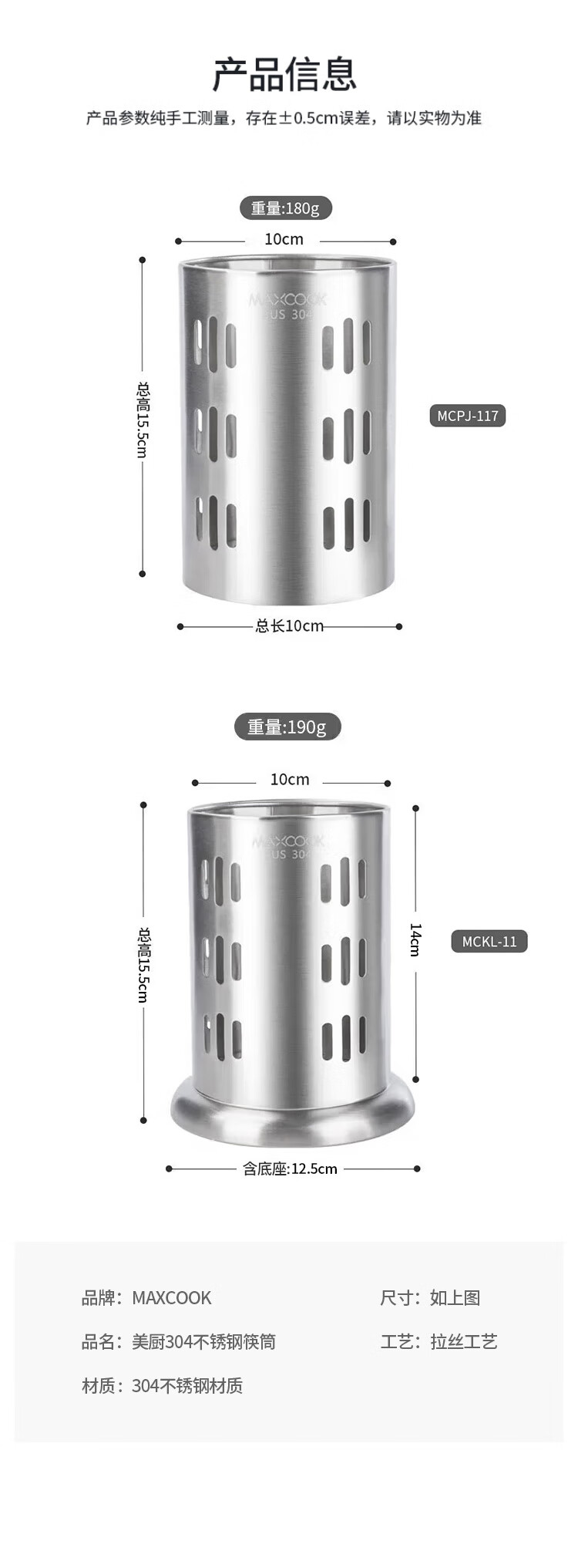 MAXCOOK 304 stainless steel chopstick barrel chopstick cage thickened drain storage chopstick holder new style MCKL-11