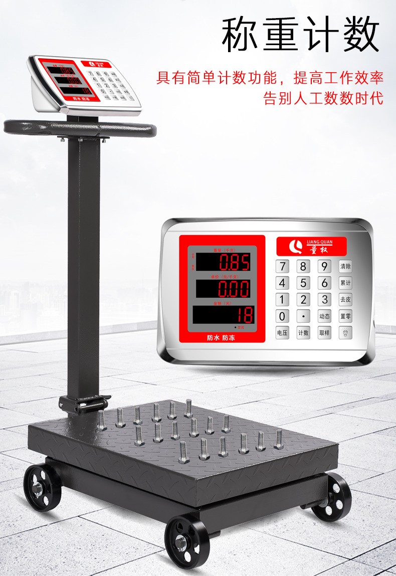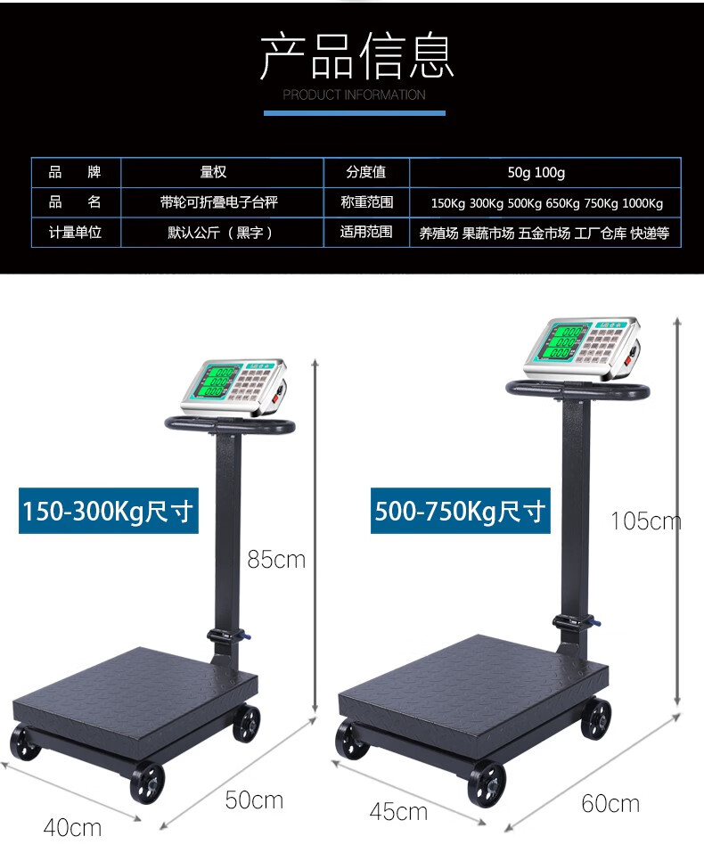 Measurement rights folding electronic platform scale with wheels commercial electronic platform scale 300KG electronic scale price 500kg scale floor scale 1000kg weight scale cargo weighing scale 300kg wheeled 40*50 single-sided display