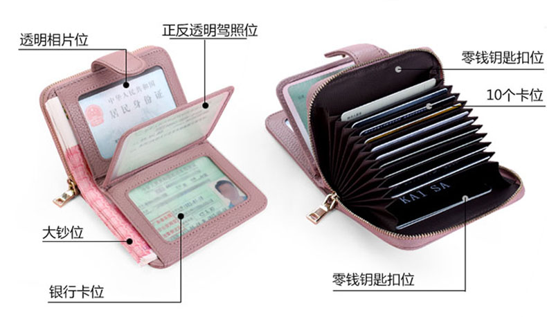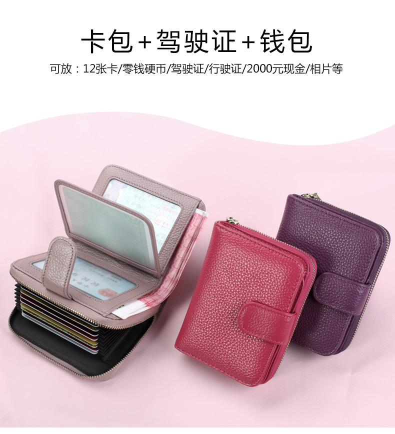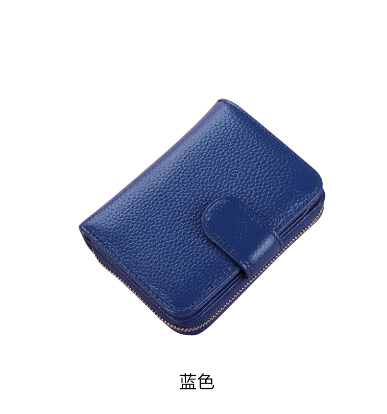 Zordani New Women's Wallet Short Multi-Function Organ Card Holder Zipper Cowhide Driver's License Leather Case Women 1017 Blue