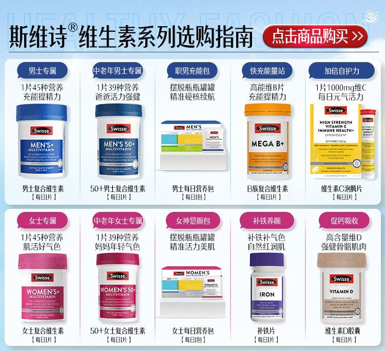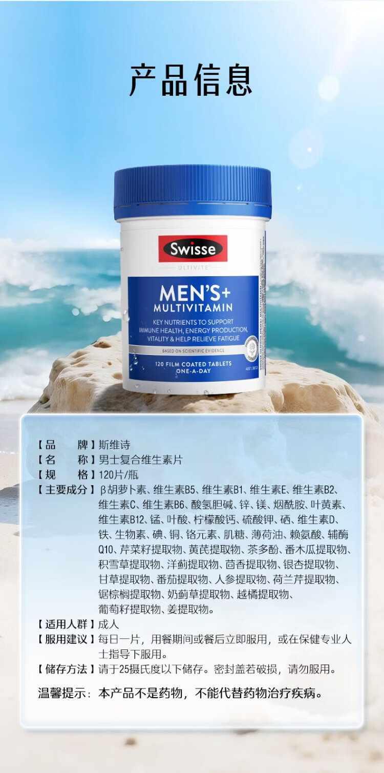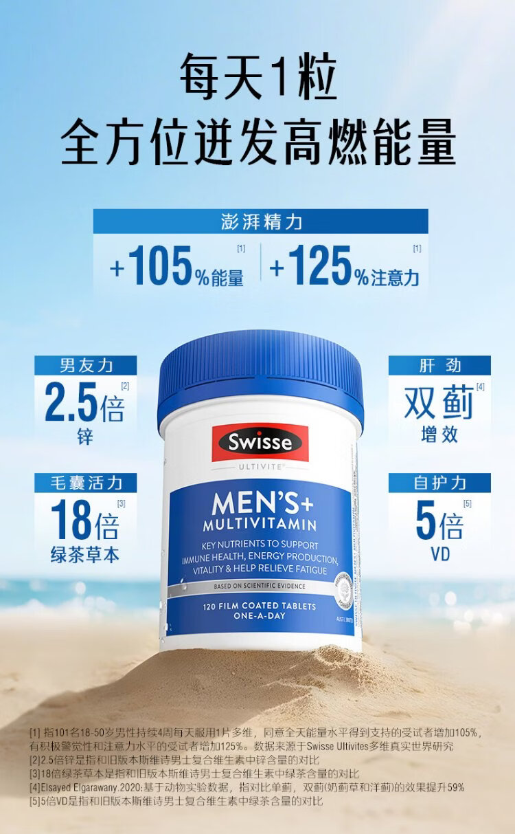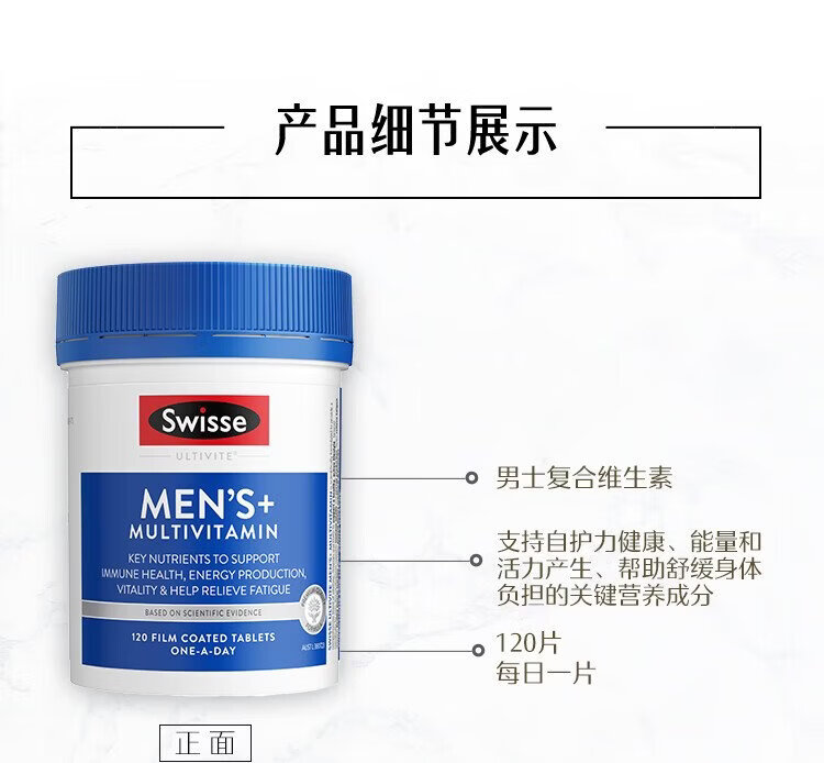 Swisse Men's Multivitamin Vitamin B Vitamin C Vitamin E Vitamin D Calcium Iron Zinc Magnesium Selenium Nutrition Pack 120 Tablets/Bottle