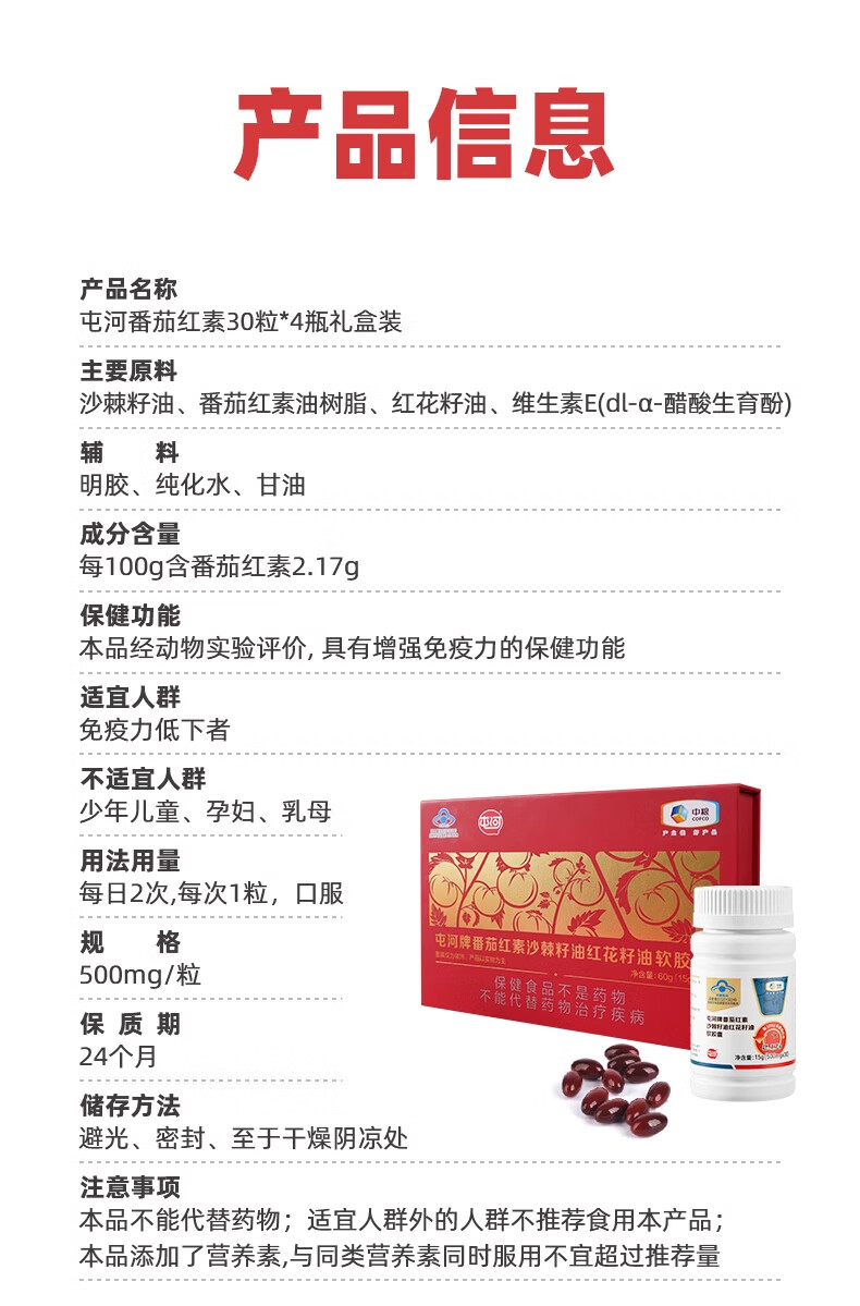 Tunhe COFCO Lycopene Men's Health Products Improve Immunity Sea Buckthorn Seed Oil Safflower Seed Oil Soft Capsules Gift Box 30 Capsules * 4 Bottles Gift Box A Must-Have Gift