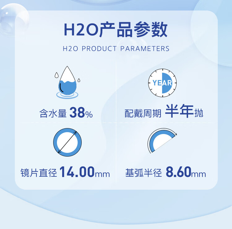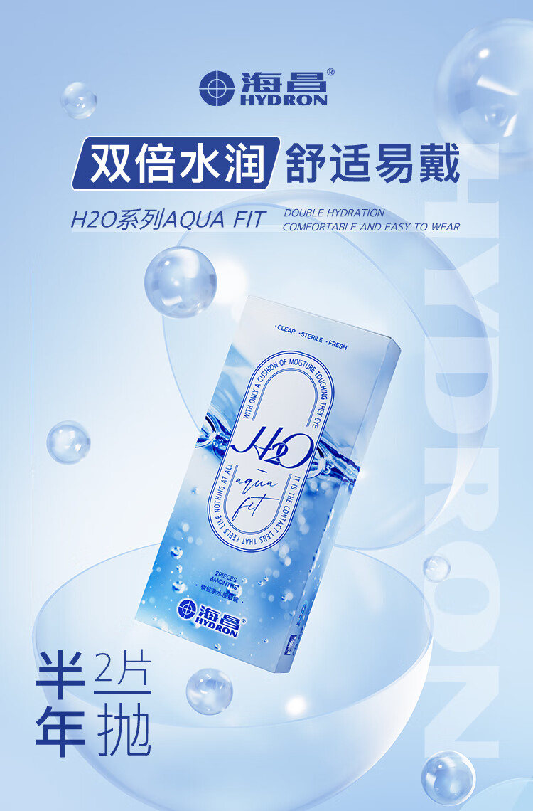 Haichang H2O half-year disposable contact lenses, 2 pieces, clear myopia glasses, hydrating and comfortable, 400 degrees