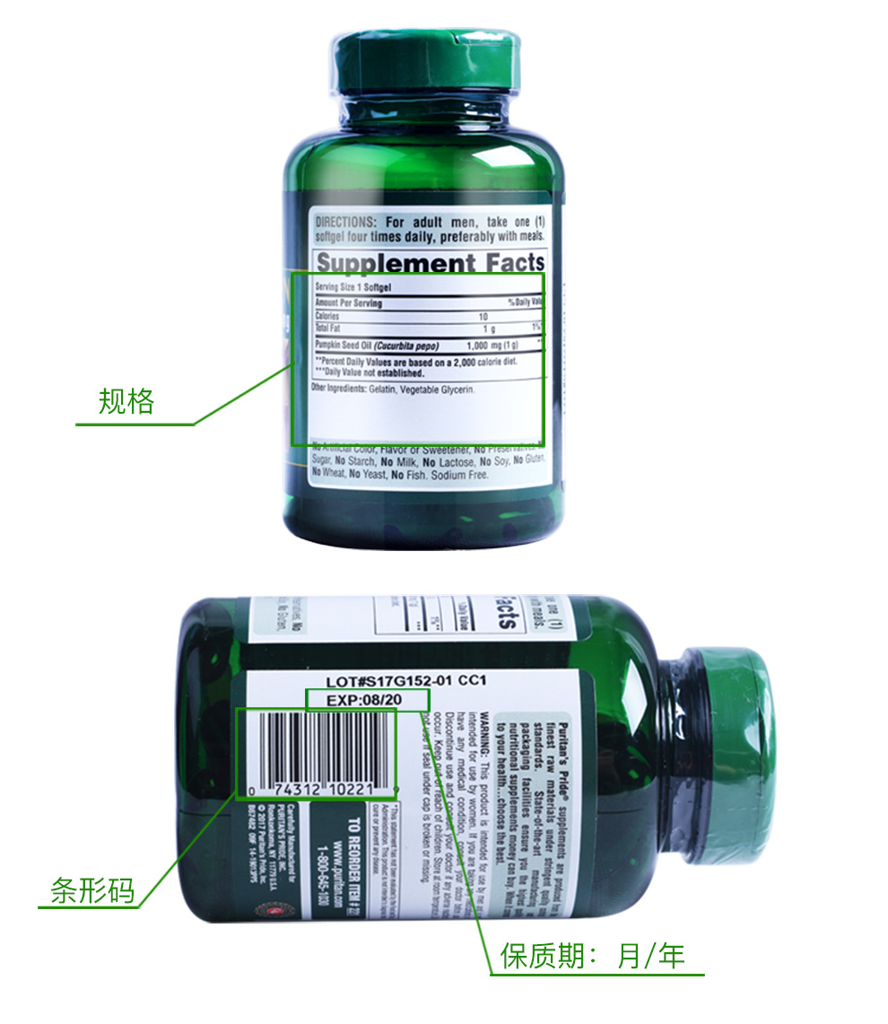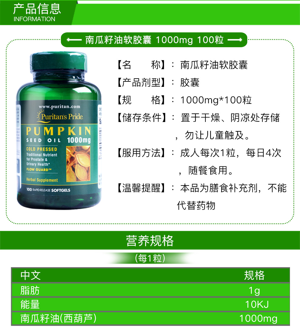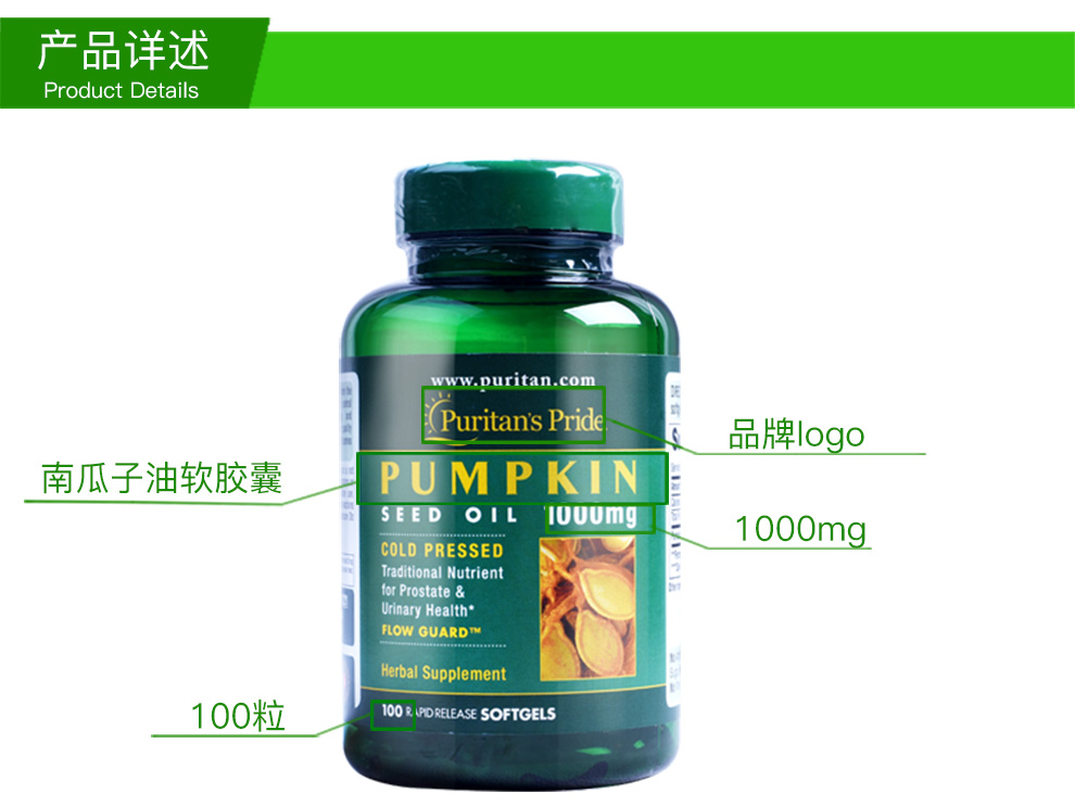 Puritan's Pride Pumpkin Seed Oil Soft Capsules 1000mg 100 capsules imported from the United States for men with frequent urination and urgency