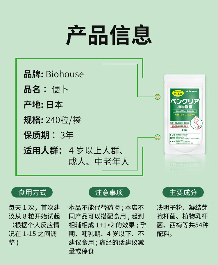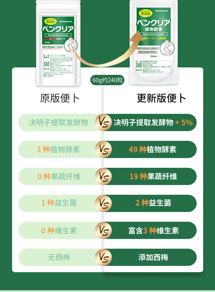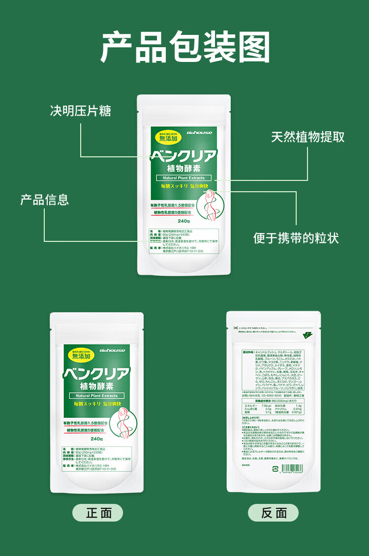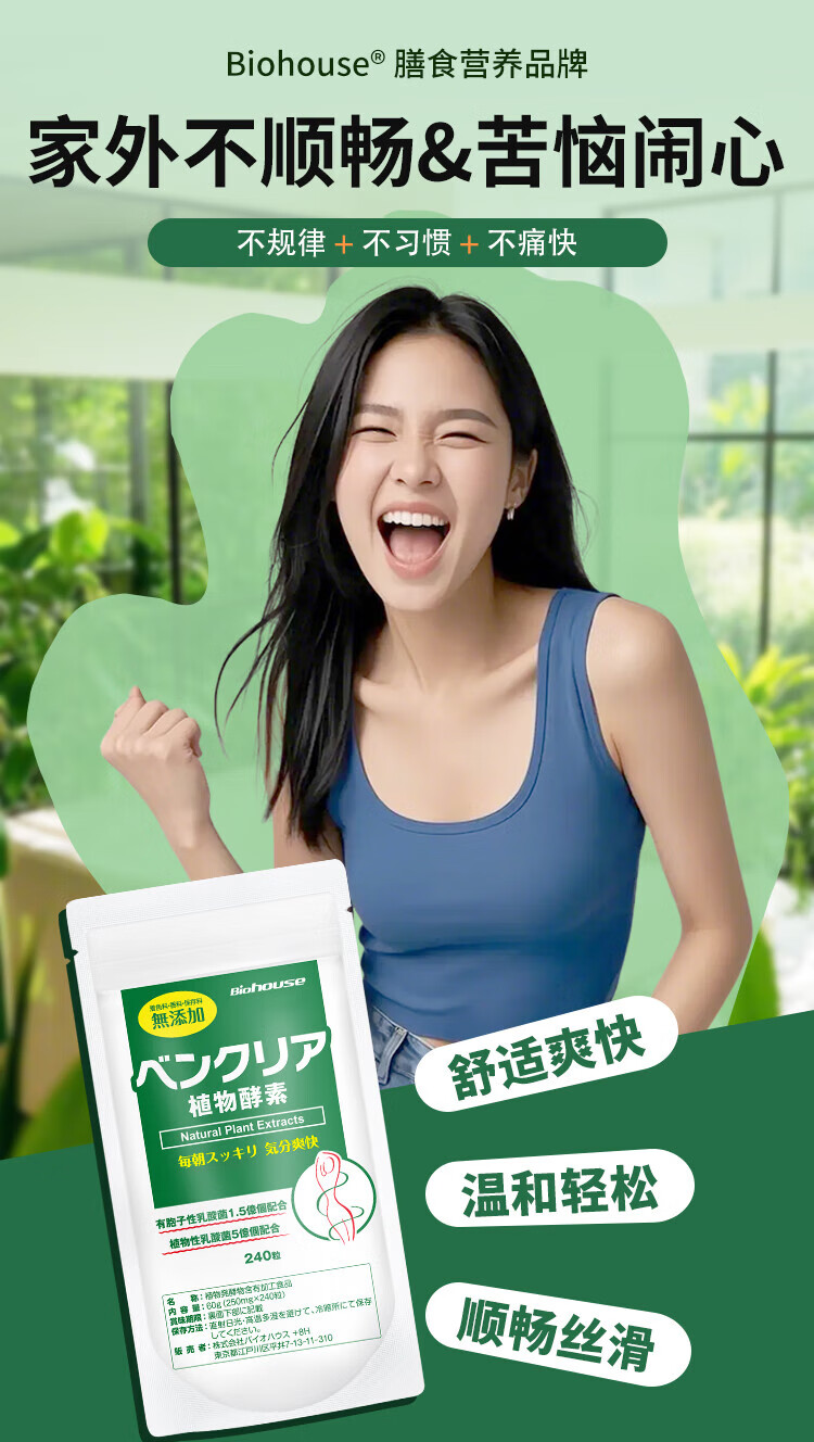 BioHouse Japanese enzyme bowel cleansing night enzyme constipation detoxification weight loss puff tablets 240 tablets