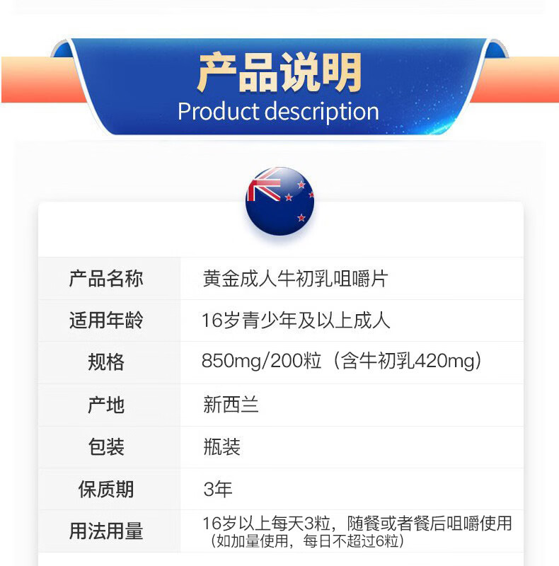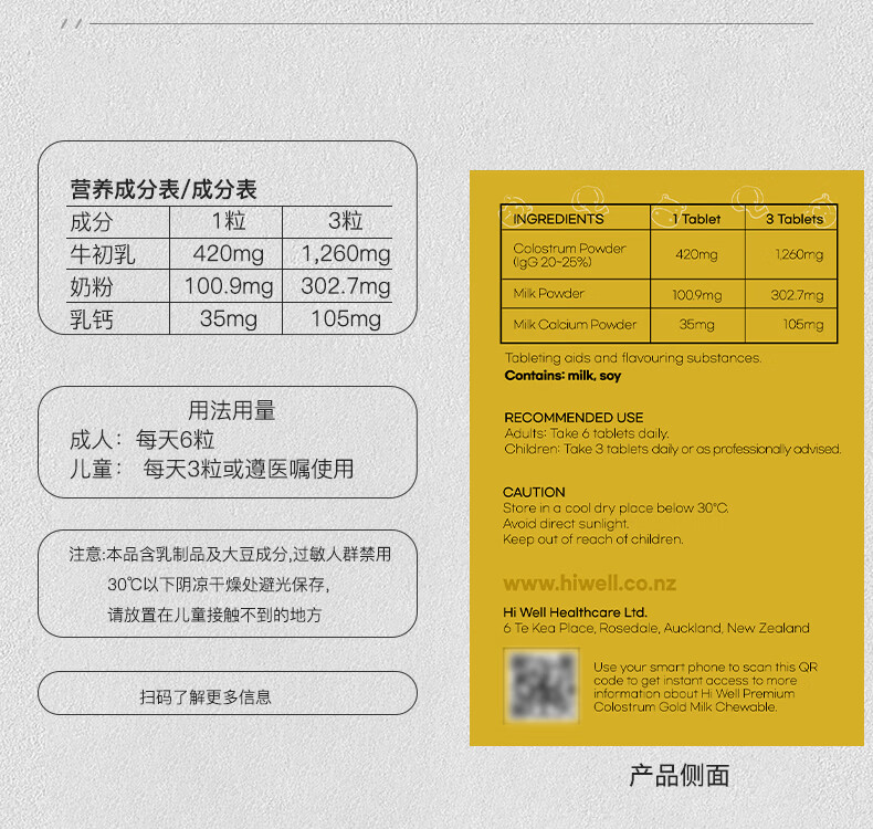 Hiwell New Zealand high-content high-immunoglobulin colostrum chewable tablets for adults, original flavor, sugar-free for pregnant women