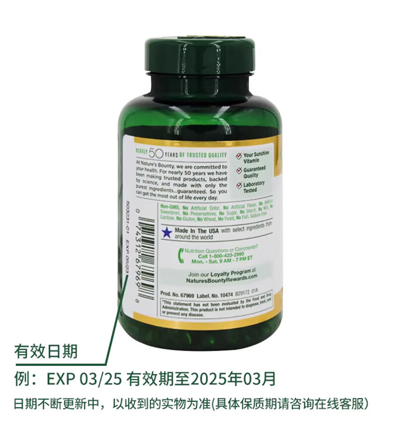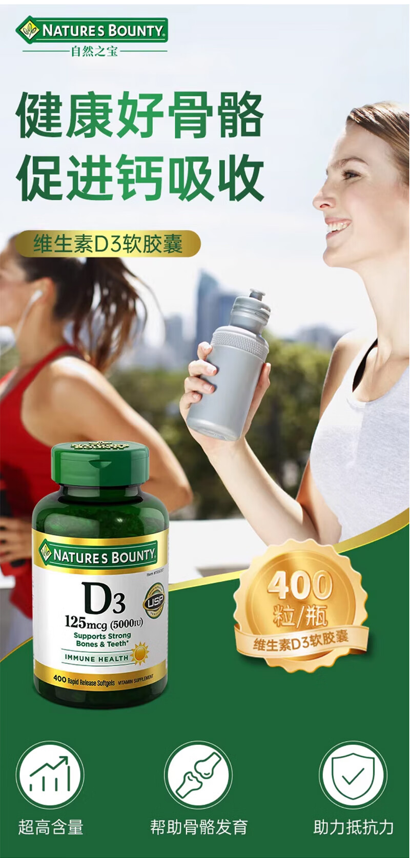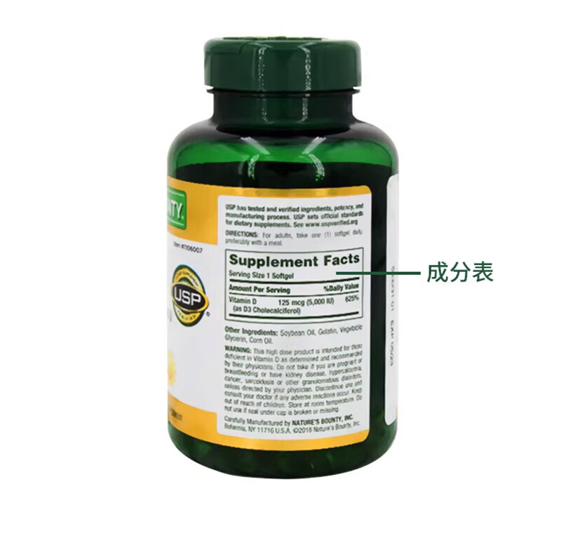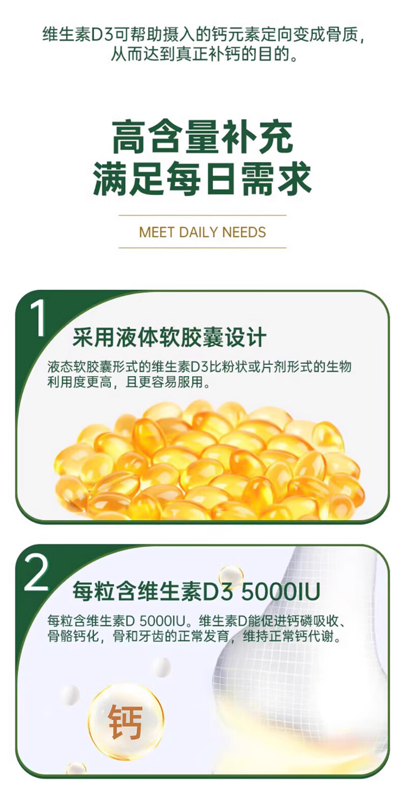 Nature's Treasure Vitamin D3 imported from the Sunshine Bottle 5000IU 400 capsules, calcium supplement for middle-aged and elderly adults to promote calcium absorption 400 capsules * 1 bottle imported from the United States