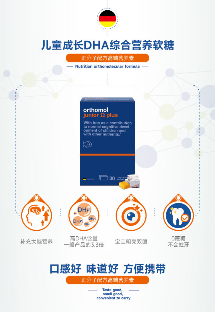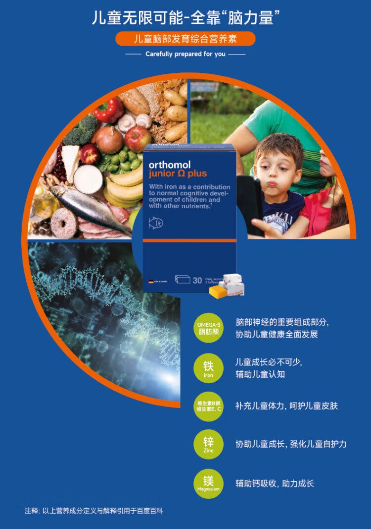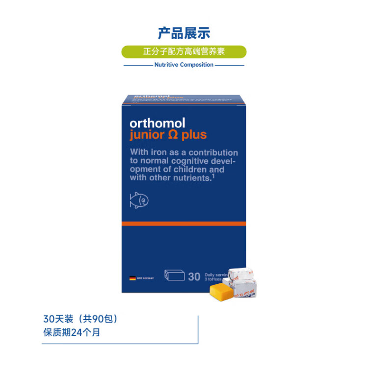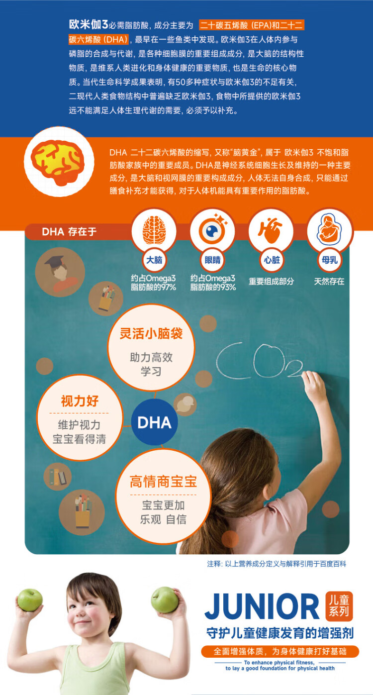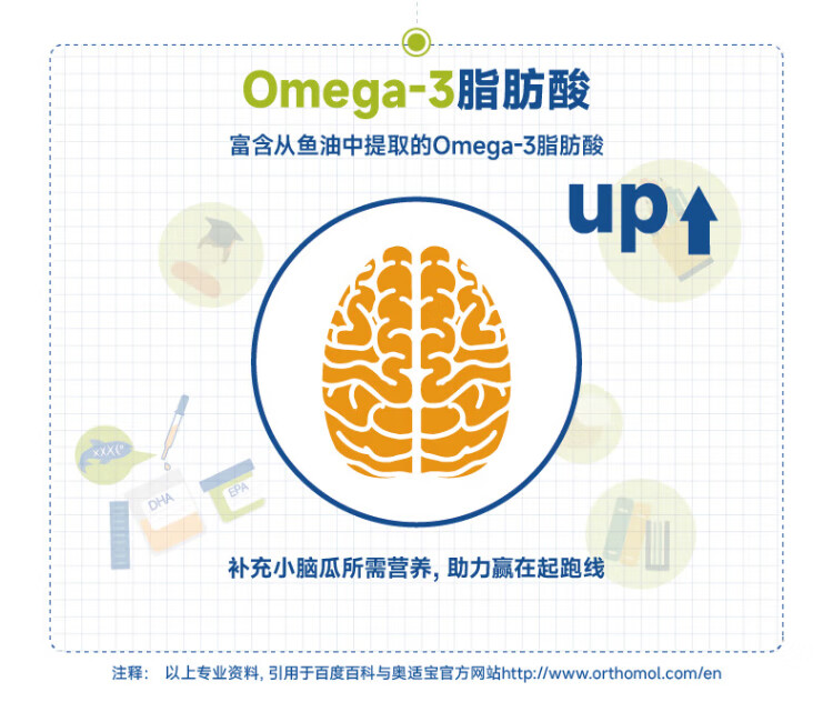 Aoshibao German imported Omega3 children's small champion fish oil dha adolescent students brain supplement to enhance memory focus 30 days basic omega small champion fish oil brain supplement 90 capsules * 1 box