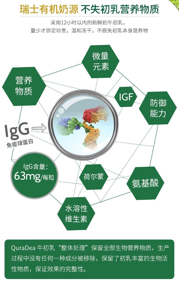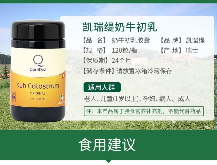 QuraDea Swiss colostrum capsules, immune globulin health food for children and the elderly (refrigerated storage)