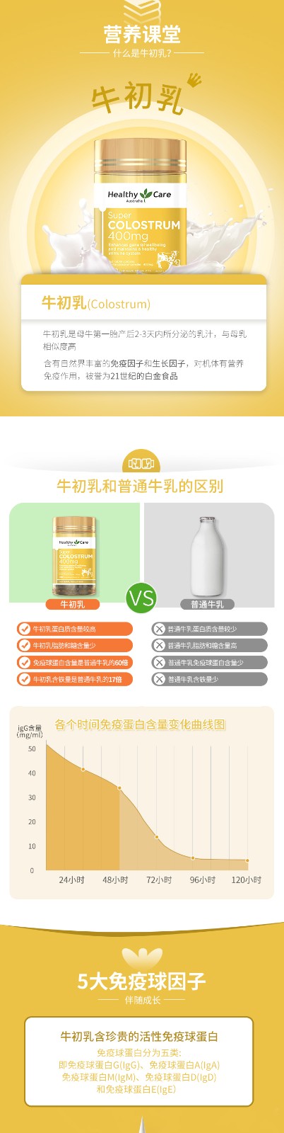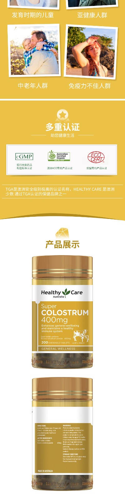 Healthy Care Colostrum Chewable Tablets Children's Calcium Milk Tablets Improve Immunity Immune Globulin Enhances Resistance Imported from Australia 1 can