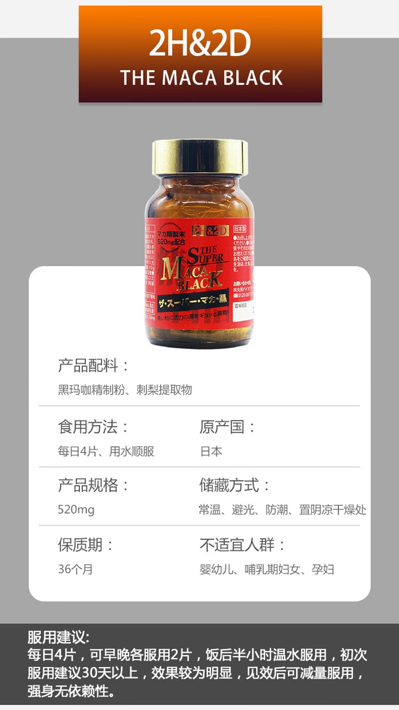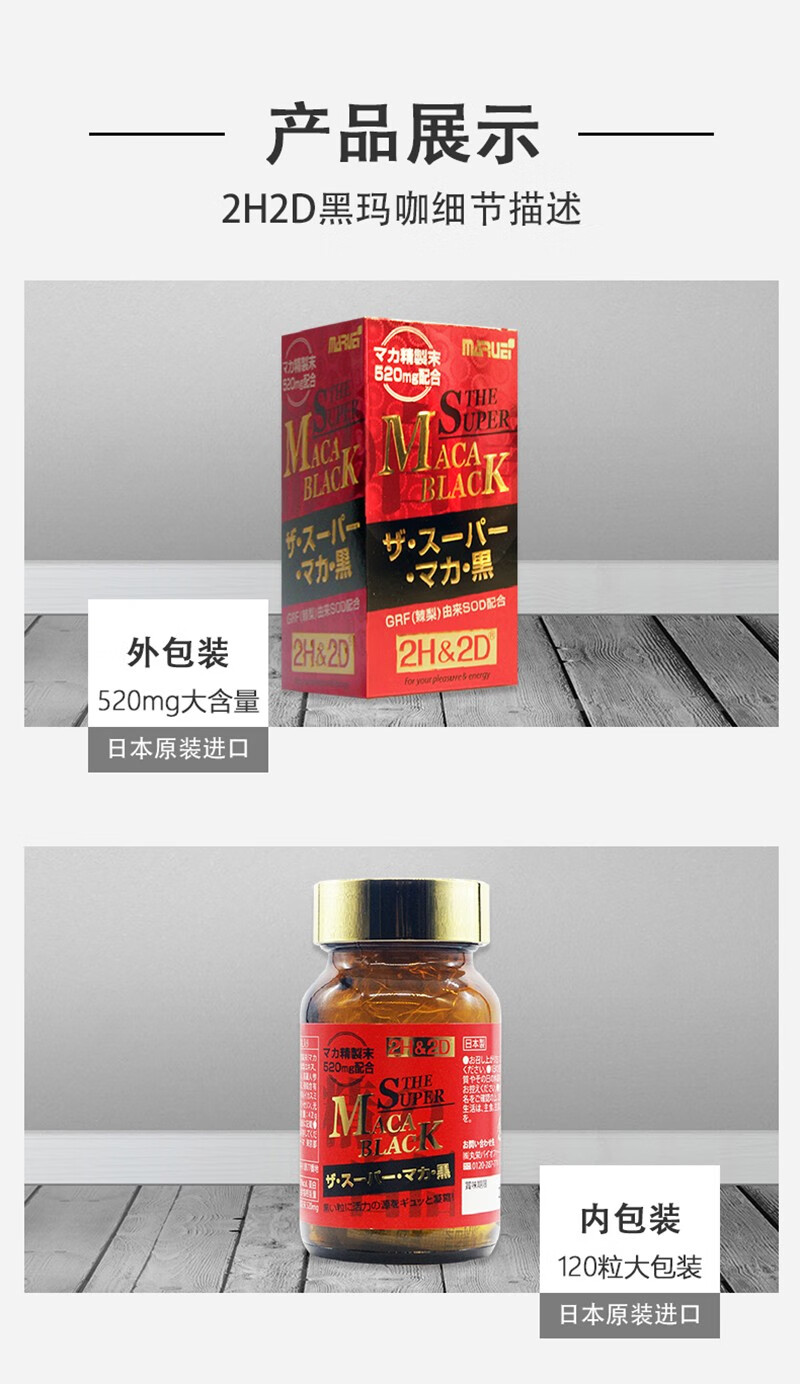2H2D Wanrong Black Maca, Peruvian anti-fatigue male supplement, 120 capsules, 30-day supply, direct mail from Japan, two bottles