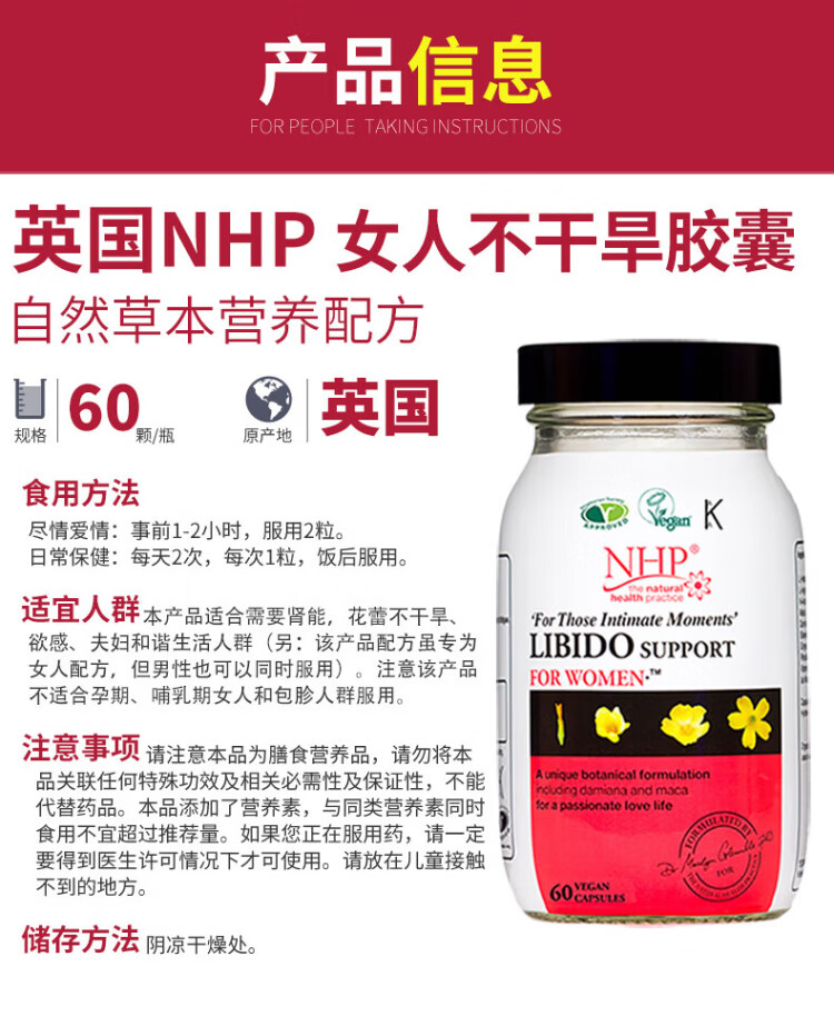 NHP female kidney tonifying female estrogen hormonal rapid intravenous female special sexual function indifference quick desire effect wangxing medicine female 60 capsules