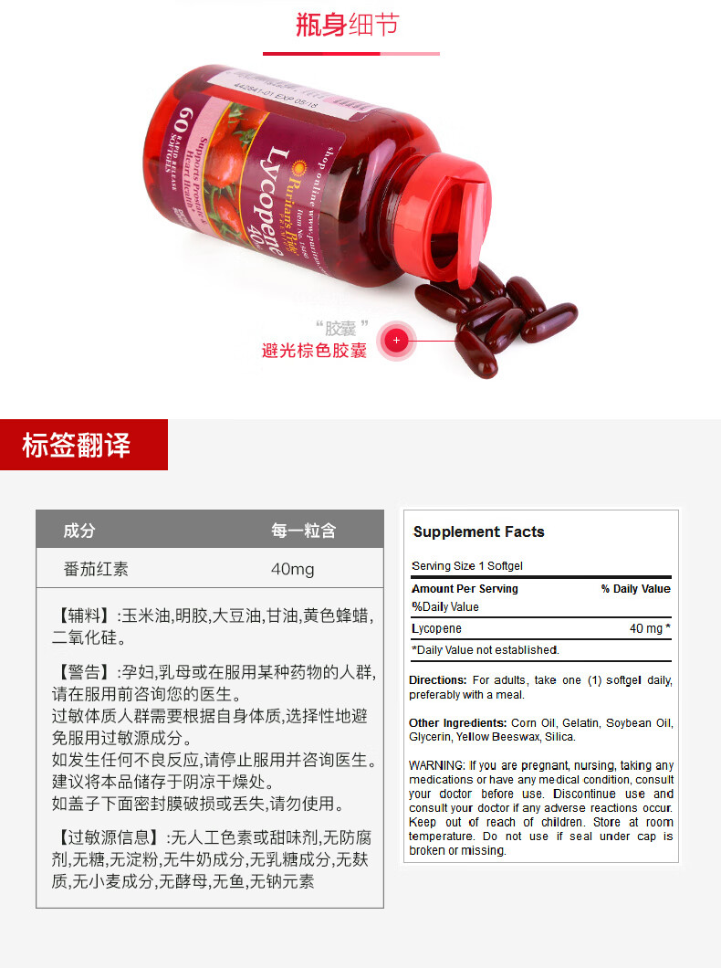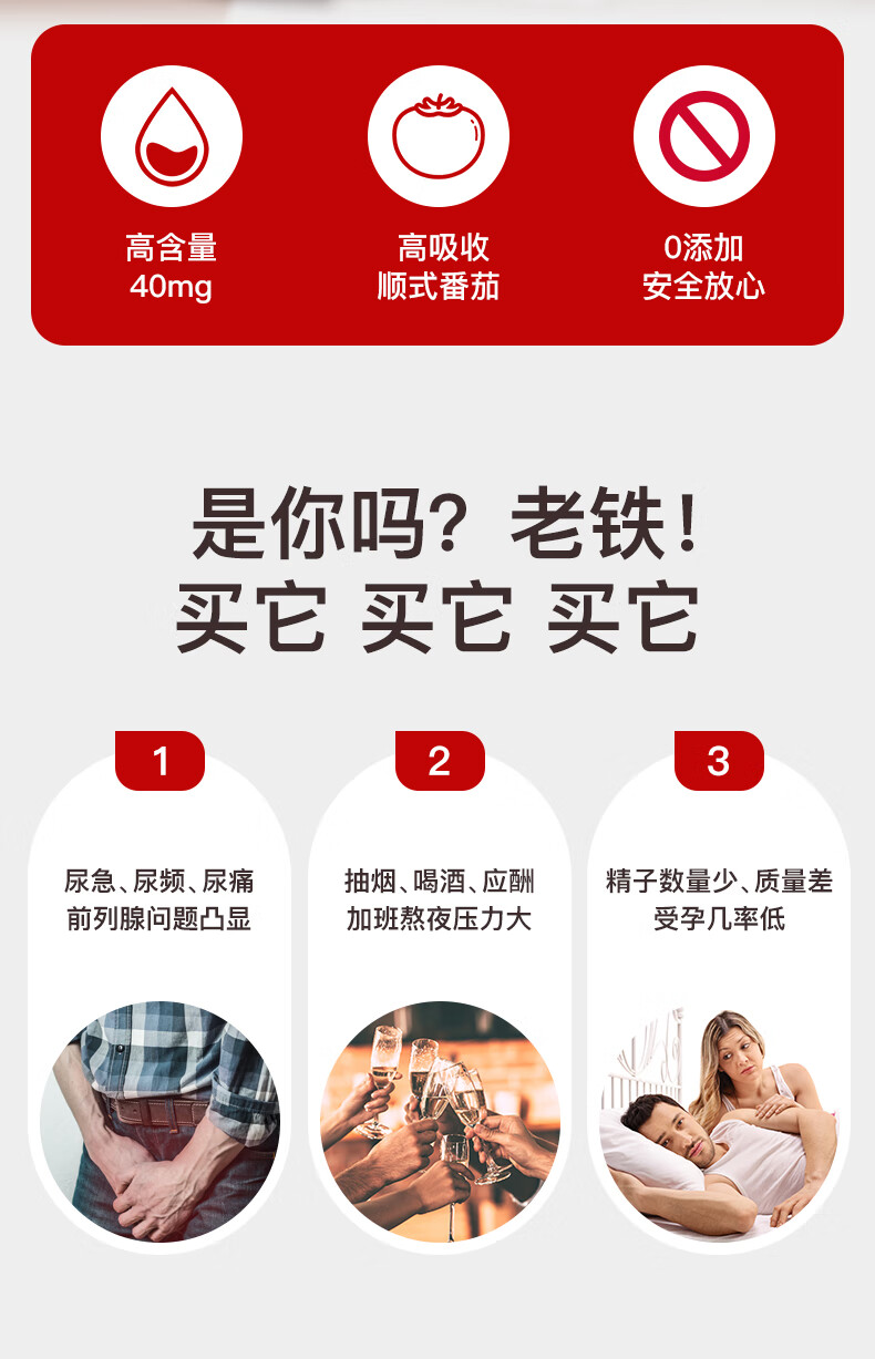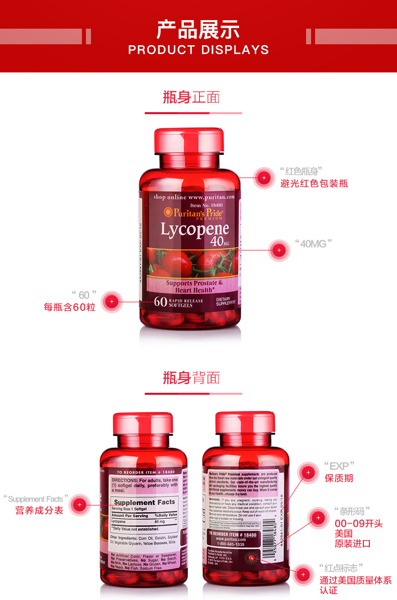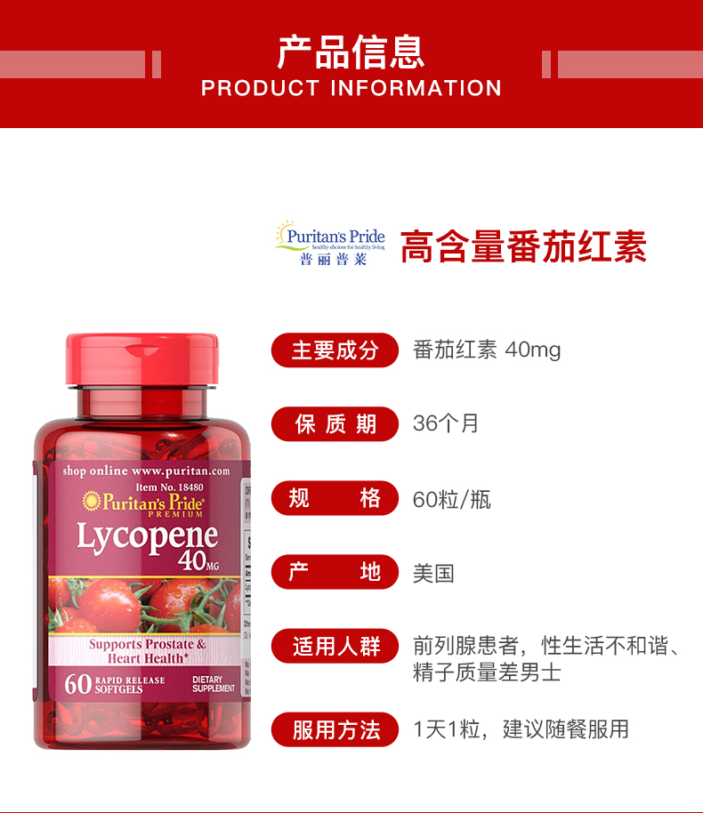 Purple Lycopene Soft Capsules protects men's prostate health, nourishes the kidneys and prepares for pregnancy, imported from the United States, relieves prostate lycopene 40mg*60 capsules